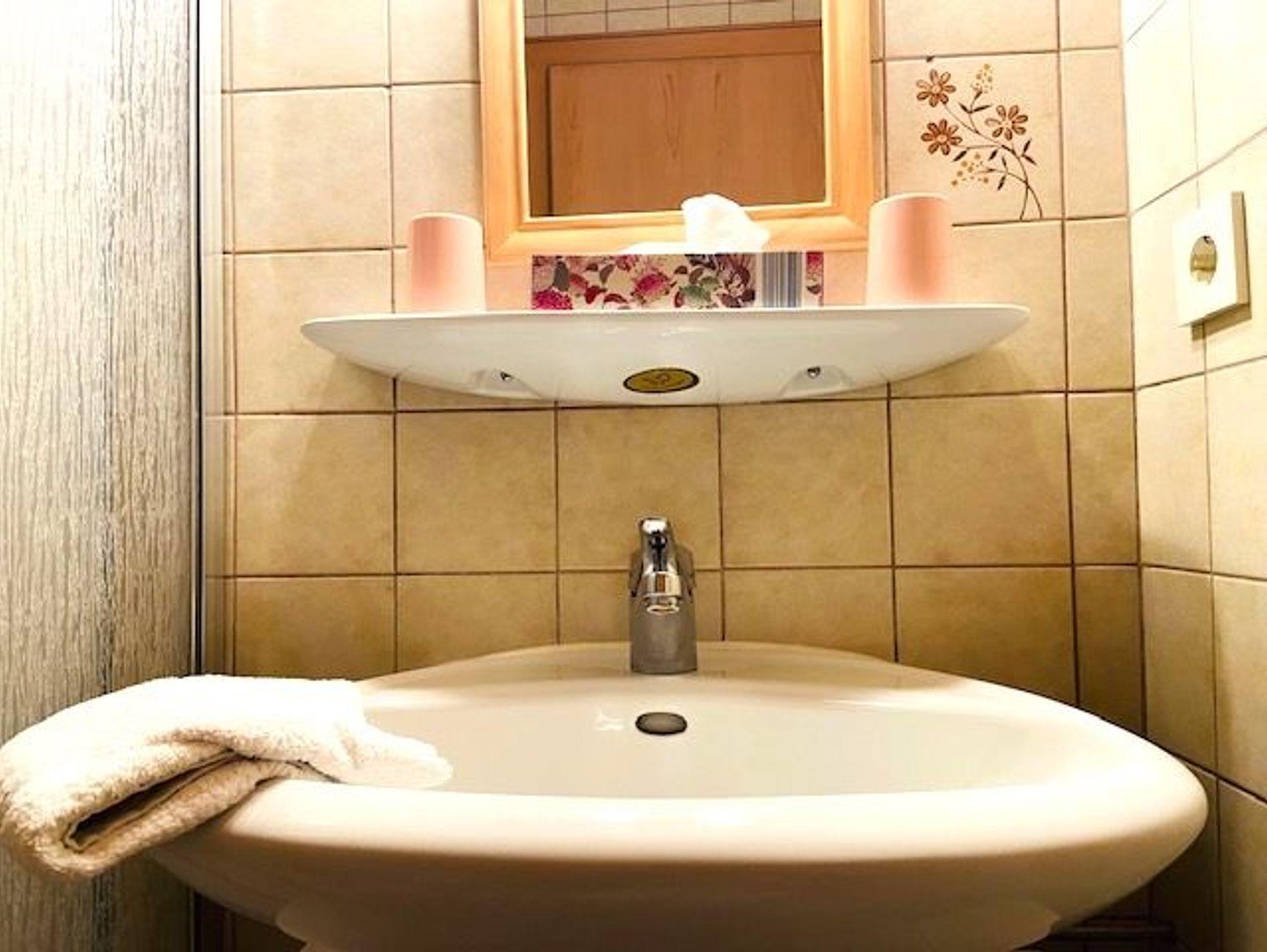 • Bad mit Dusche, Waschbecken und WC sowie Haartrockner
