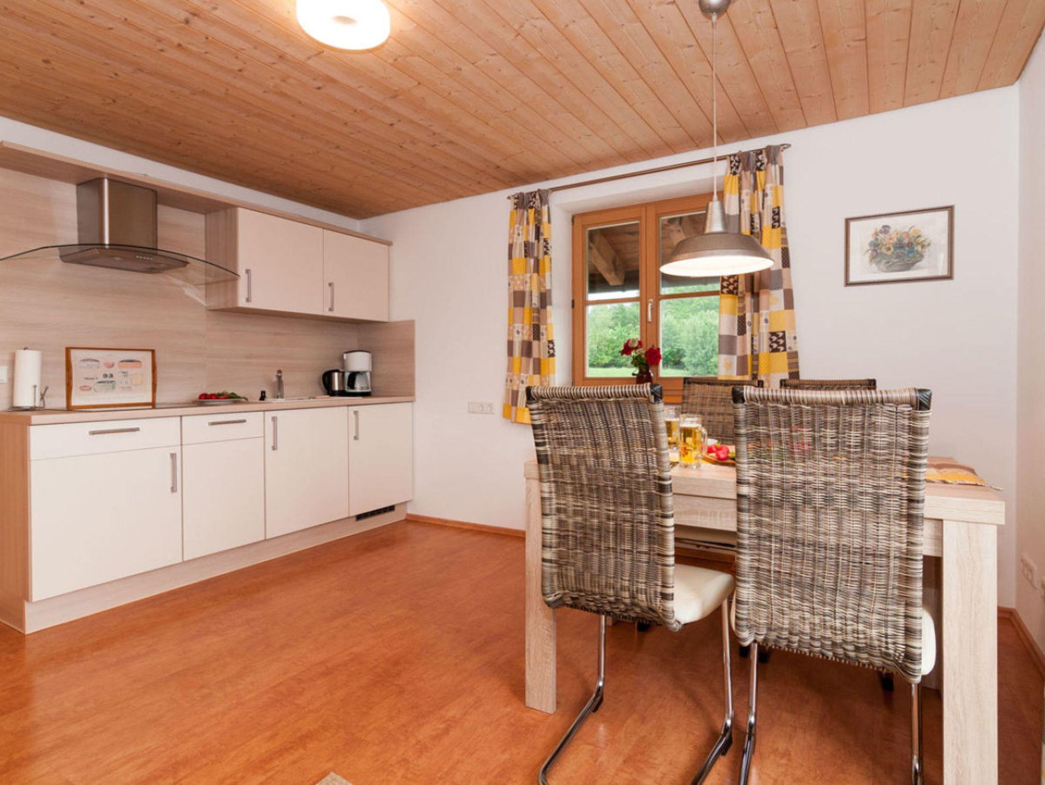 - Wohnküche mit Ceranfeld, Spülmaschine, Mikrowelle, Kaffeemaschine, Wasserkocher, Toaster , Dunstabzug nach draußen und großzügigem Essbereich für 4 Personen