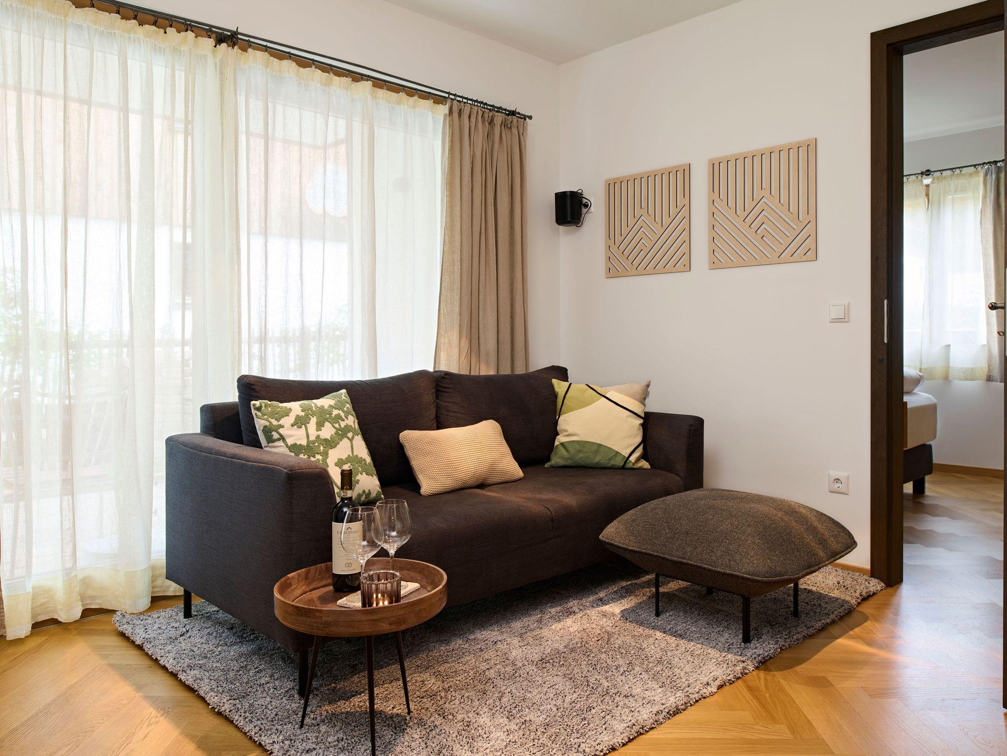 Alpine Lebensart gepaart mit schlichter Eleganz, bodenständig und luxuriös zugleich. Im Erdgeschoß gelegen, Südterrasse, komplett eingezäuner Garten,Parkettfußboden, Smart-TV, Nichtraucherwohnung, Boxspringbetten 180 x 200, hochwertige Küche, voll ausgestattet, Leihbademantel, Pflegeprodukte, Objekt liegt in einer ruhigen Sackgasse.