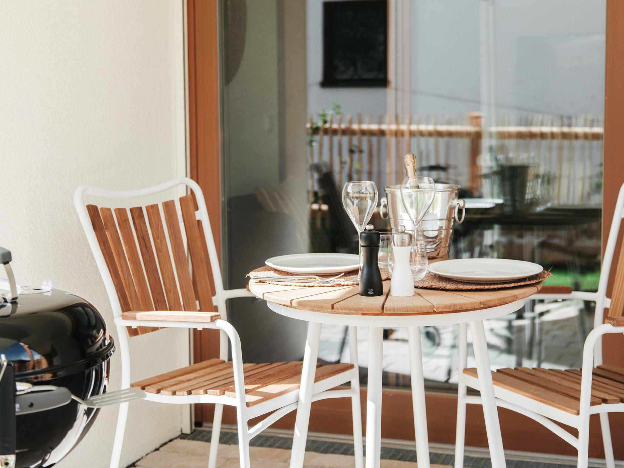 Im Erdgeschoß gelegen, Südterrasse, komplett eingezäuner Garten,Parkettfußboden, Smart-TV, Nichtraucherwohnung, Boxspringbetten 180 x 200, WC extra, hochwertige Küche, voll ausgestattet, Leihbademantel, Pflegeprodukte.
