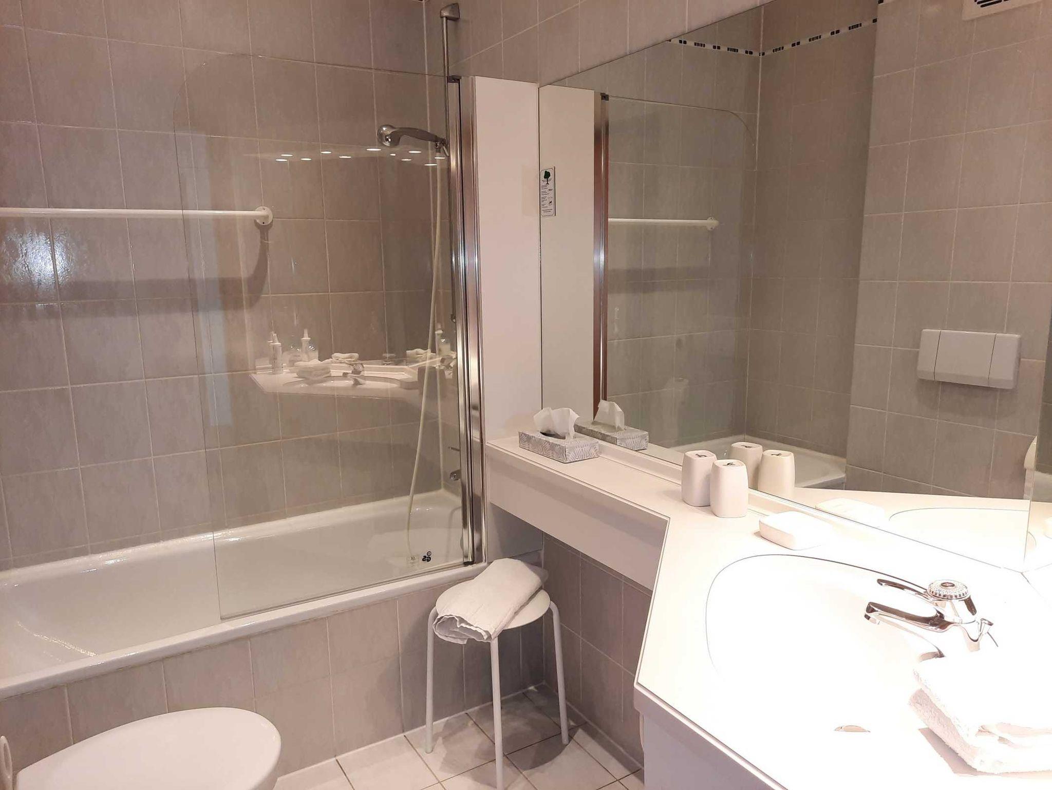 • Bad mit Badewanne, Duschabtrennung, WC