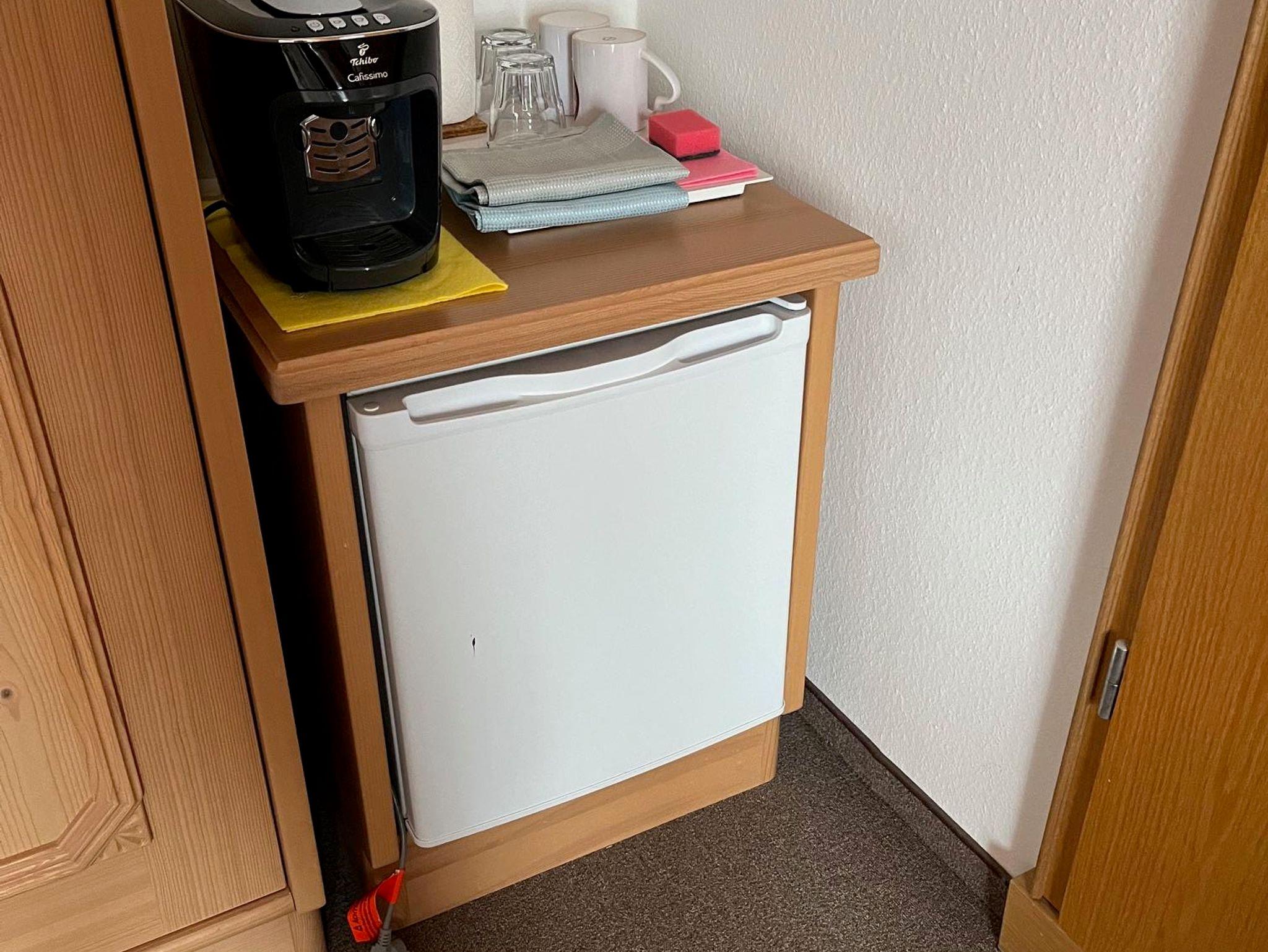Das Zimmer ist ausgestattet mit Standard-Doppelbett, großem Schrank, TV, WLAN, Sitz- und Essecke, Kaffeemaschine, Teekocher, Balkon mit Sitzgelegenheit und privatem Bad mit Dusche und WC. Ein gemeinschaftlicher Wasch-Trockner steht im 1. Stock zur Verfügung. Gäste können den Kühlschrank im Flur des 1. Stocks kostenlos nutzen, um Getränke oder Lebensmittel zu kühlen.