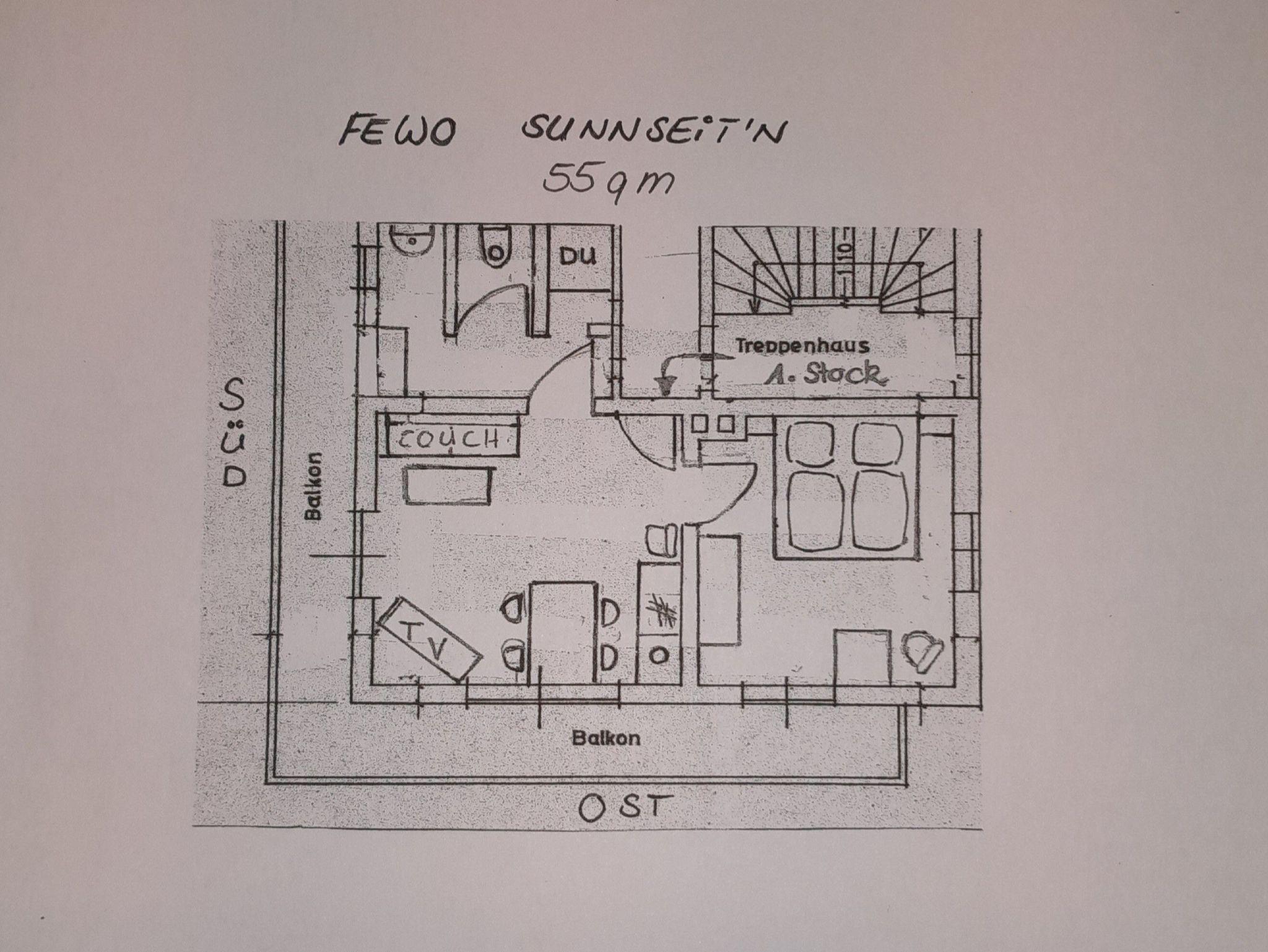 Die Ferienwohnung ist umsäumt von einem Ost-Süd-Balkon, der zum