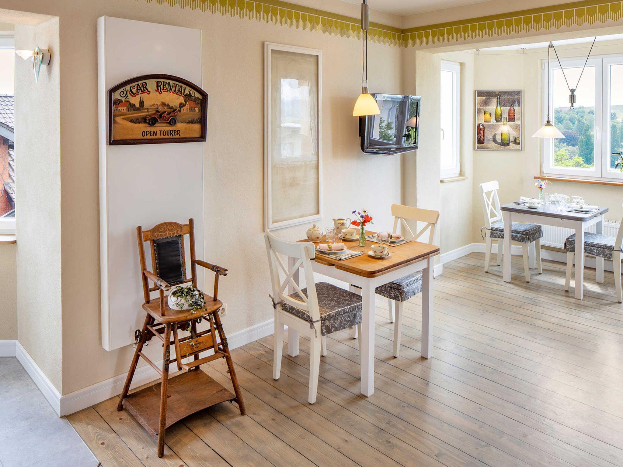 Vom Frühstücksraum aus haben Sie einen traumhaften Panoramablick über die Ausläufer des Kellerwaldes.