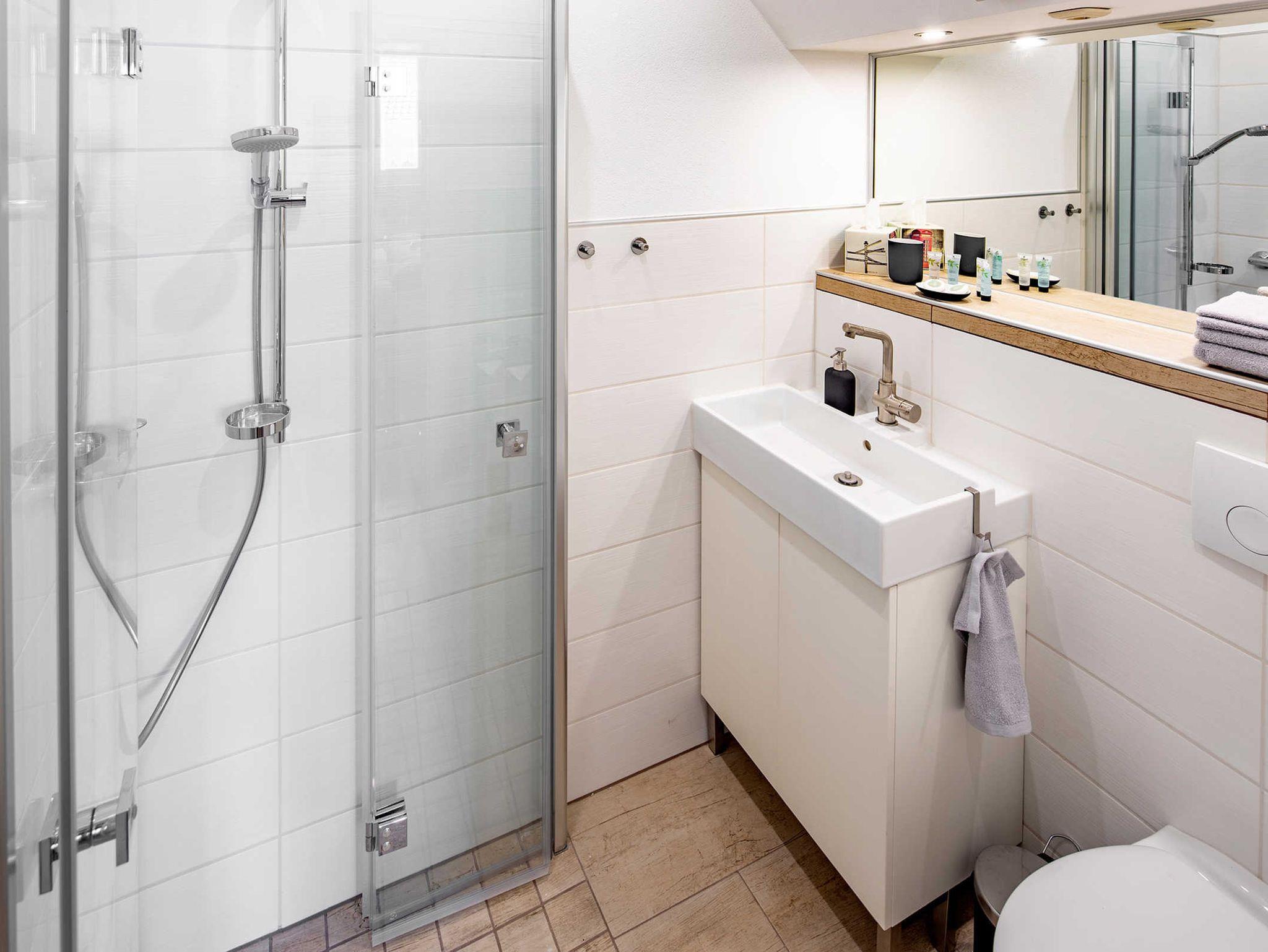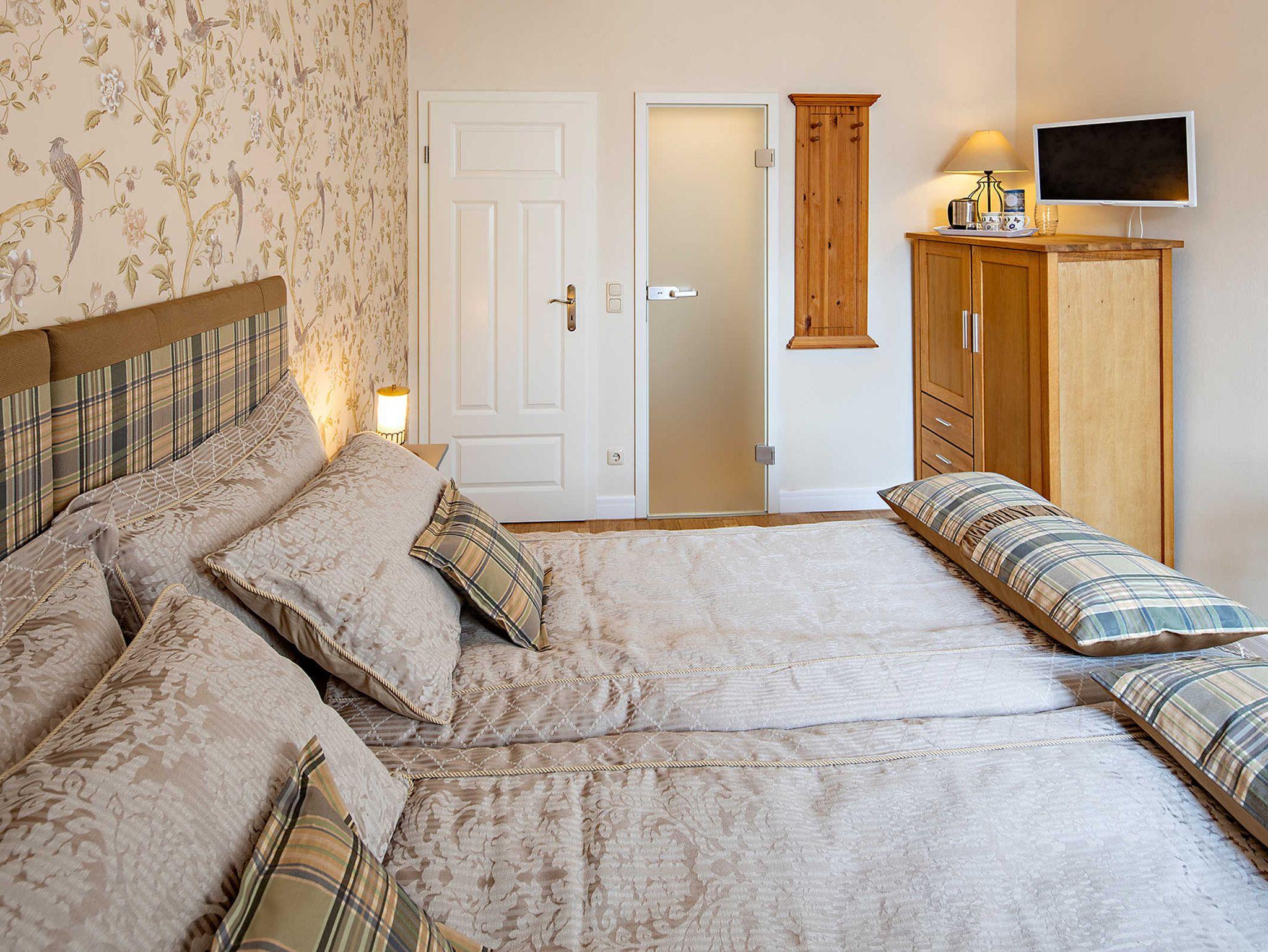 Gemütliches Zimmer mit Duschbad. Es besteht die Möglichkeit das Springboxbett (160cm) auch als zwei Einzelbetten zu nutzen.
