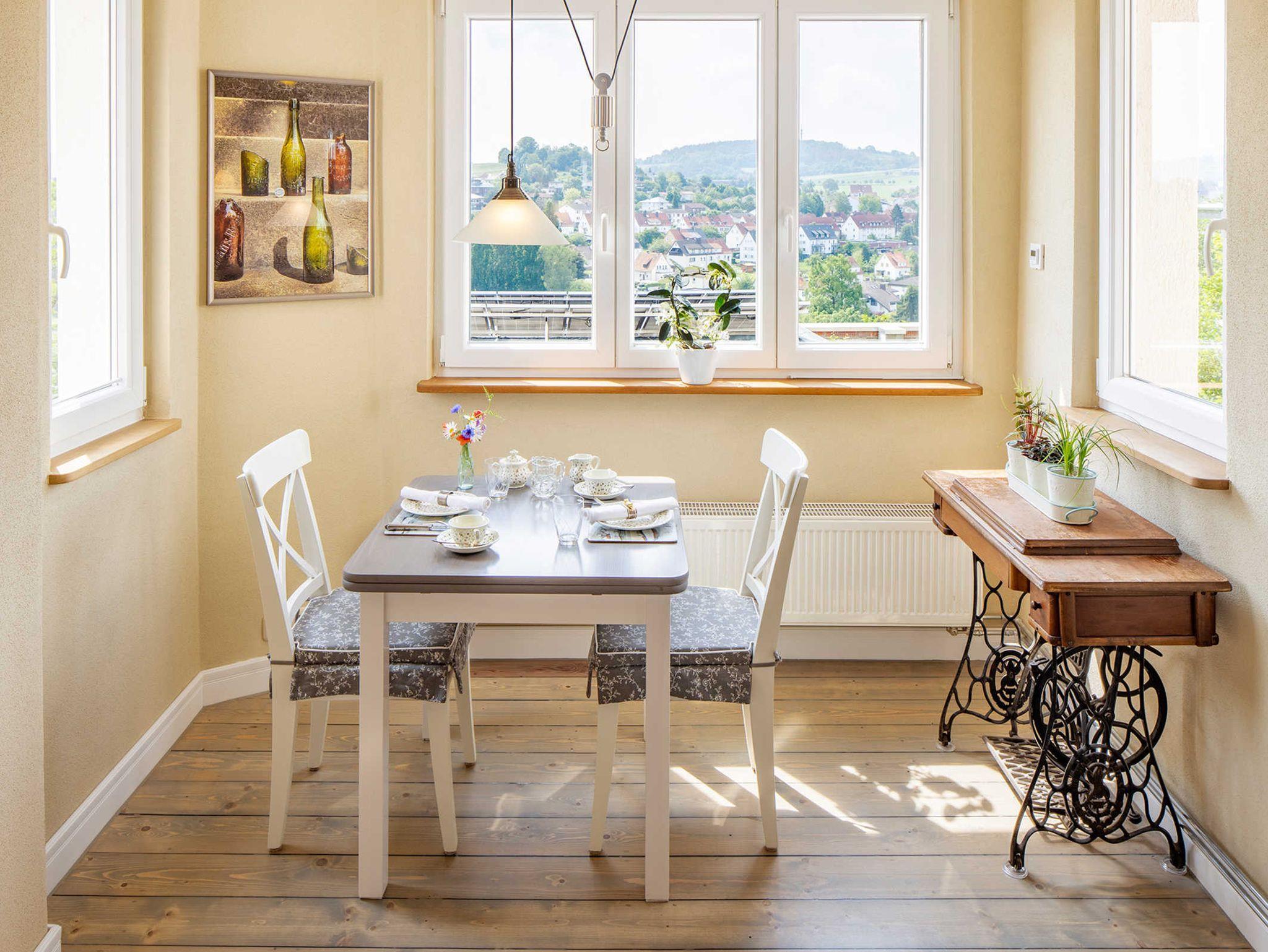 Vom Frühstücksraum aus haben Sie einen traumhaften Panoramablick über die Ausläufer des Kellerwaldes.