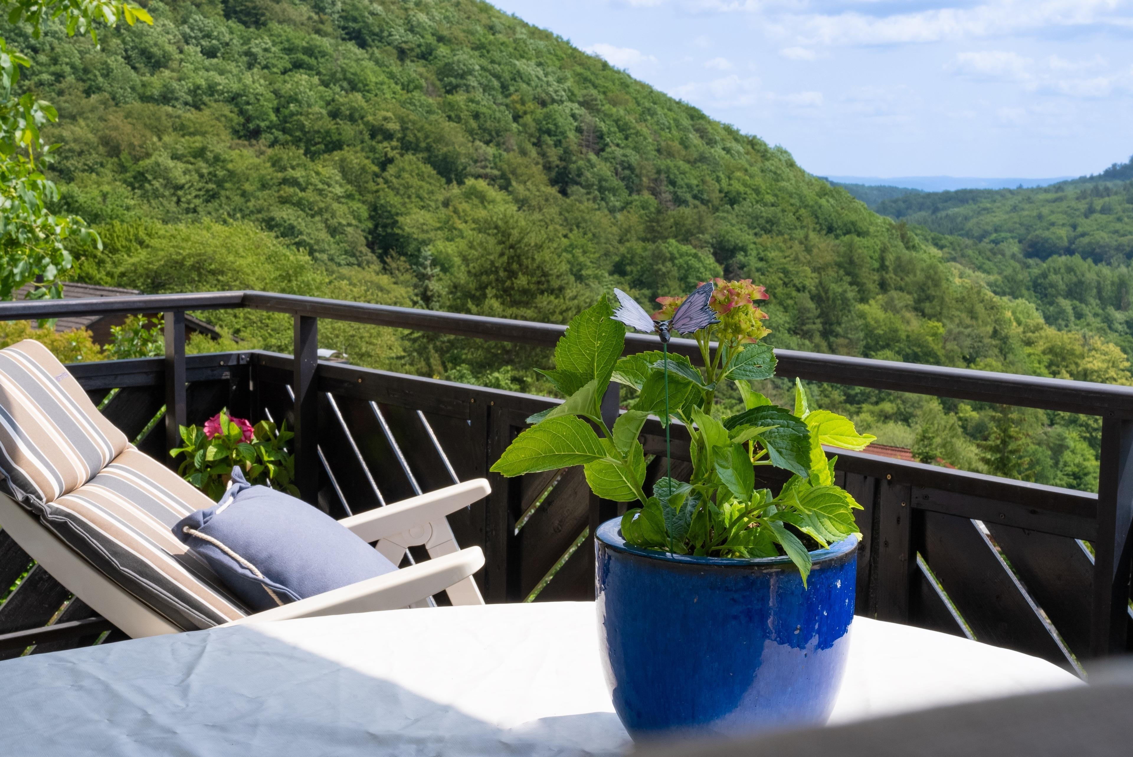 Früh morgens auf dem überdachten und windgeschützten Balkon könnt Ihr mit einer Tasse Tee ganz in Ruhe dem Zwitschern der Vögel zuhören oder die frische Waldluft genießen. Da ich das ganze Jahr die Gartenvögel füttere, sind sie ein fester und auch zutraulicher Bestandteil vom Balkon, Terrasse und Garten.
