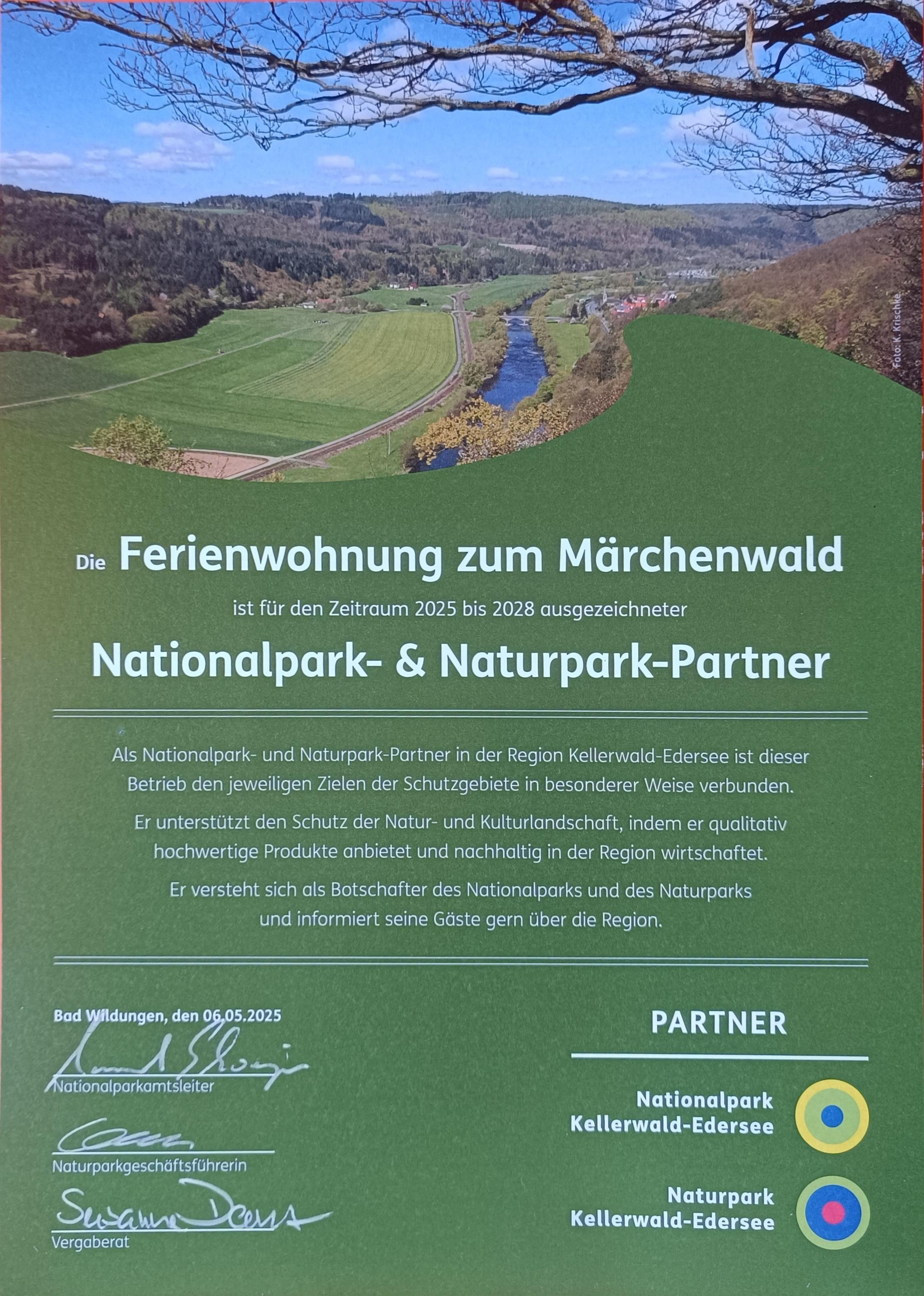Aufgrund unserer einzigartigen Lage und Ausstattung sind wir als Partnerbetrieb vom Naturpark Kellerwald-Edersee aufgenommen worden.
