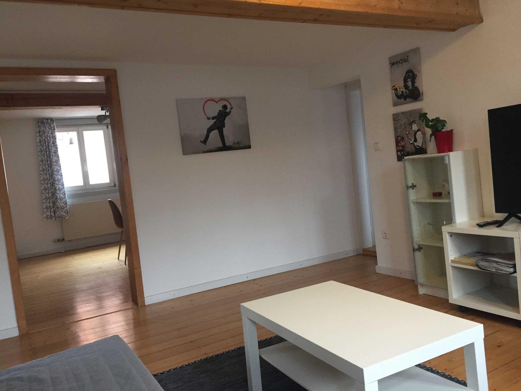 in der zweiten Etage über den Dächern der Altstadt. Original sanierter Dielenboden, mit (Schlaf)-Couch, Sessel, TV (Kabel), separate Leseecke mit Sessel und Schreibtisch, kostenfreies W-LAN für die Internetnutzung, Stereo-Anlage.