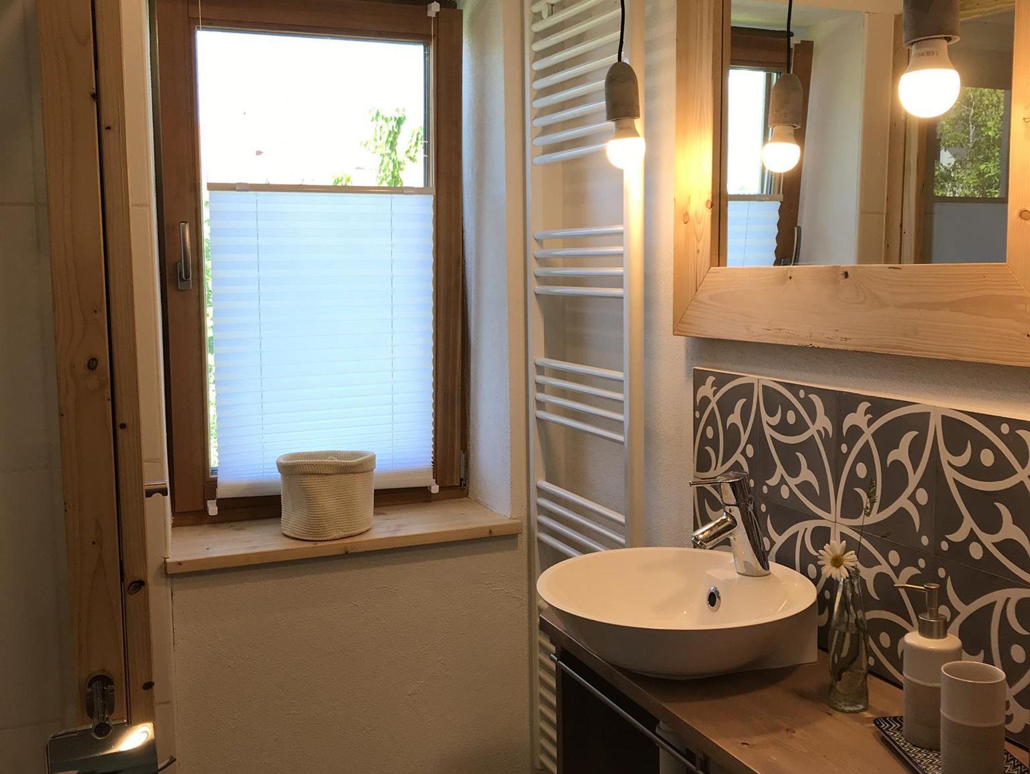 • Bad mit begehbarer Regendusche, WC, Waschmaschine, Föhn und Handtücher