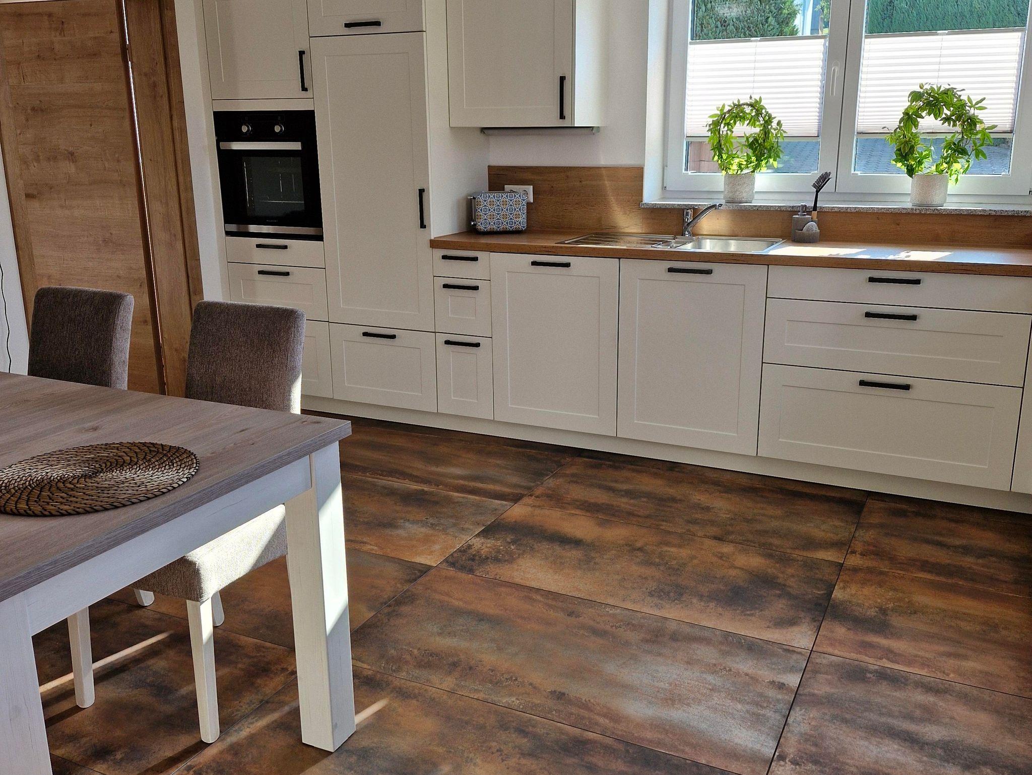 • Einbauküche mit Bora-Herd, Backofen, Spülmaschine u. Kühlschrank mit Gefrierfach