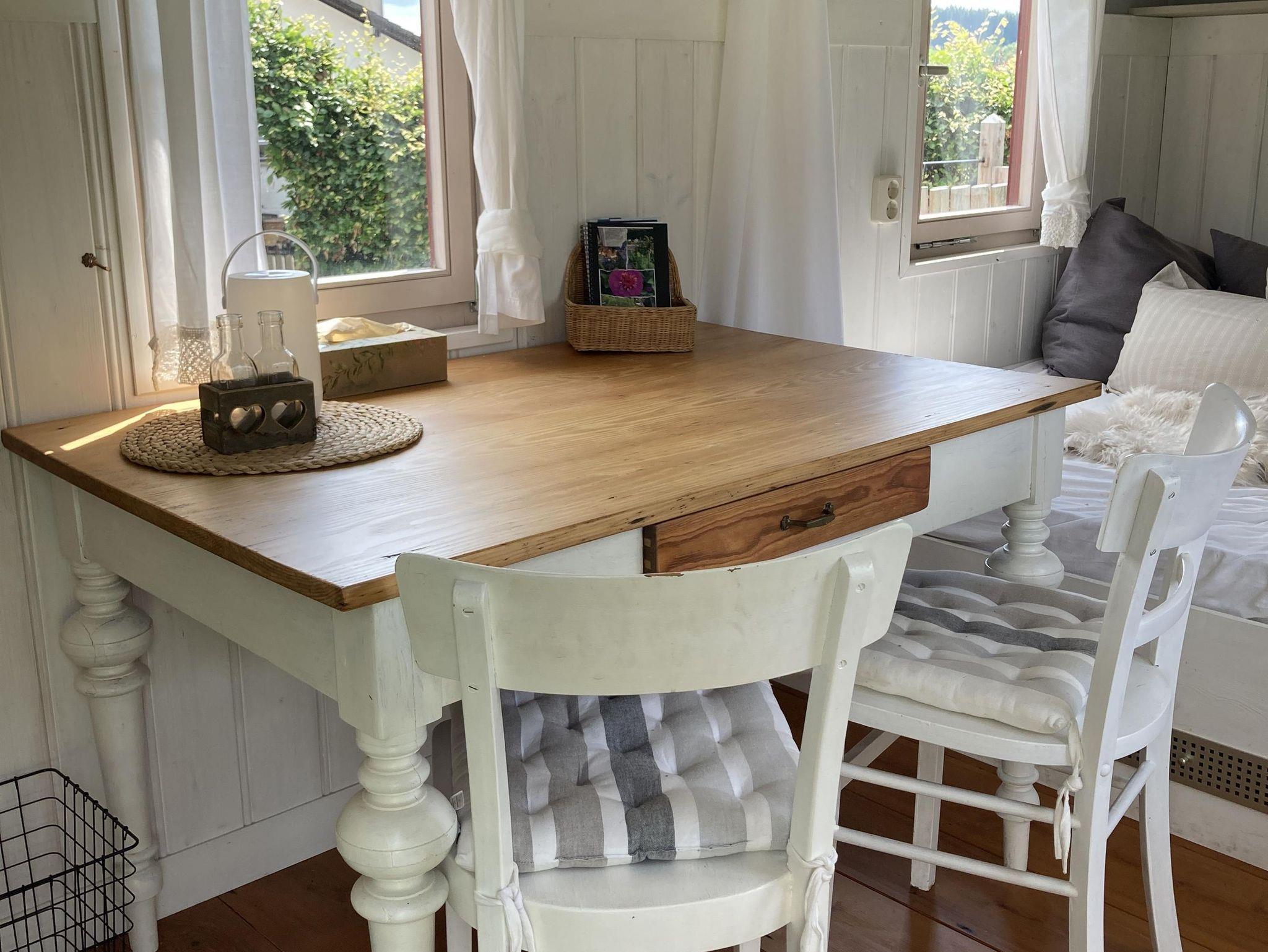 Sie haben Lust auf Wohnen im Grünen? Vielleicht sind Sie mit dem Fahrrad unterwegs und suchen eine Unterkunft für eine bzw. zwei Nächte? Dann empfehlen wir Ihnen unseren neu eingerichteten (Bau)Wagen mitten im Garten für 2 Personen.