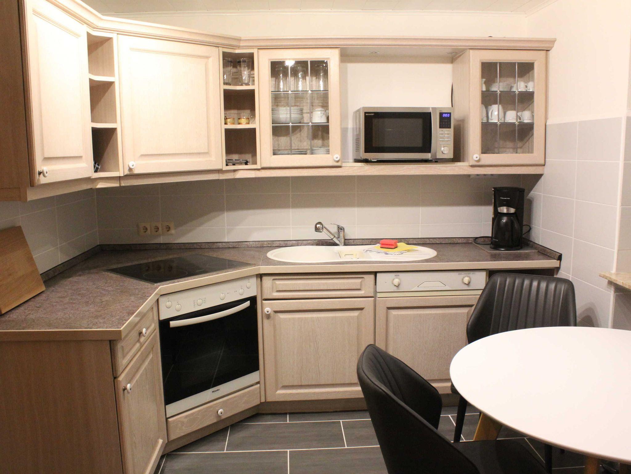 Die vollausgestattete Küche lässt keine Wünsche offen: Spülmaschine, Backofen, Cerankochherd, Mikrowelle, Wasserkocher, Toaster, Kaffeemaschine, Kühlschrank mit Gefrierfach und ausreichend Geschirr. Lassen Sie sich nach Ihrer Ankunft einen Kaffee oder Tee schmecken-alles, was Sie dafür brauchen, ist vorhanden.