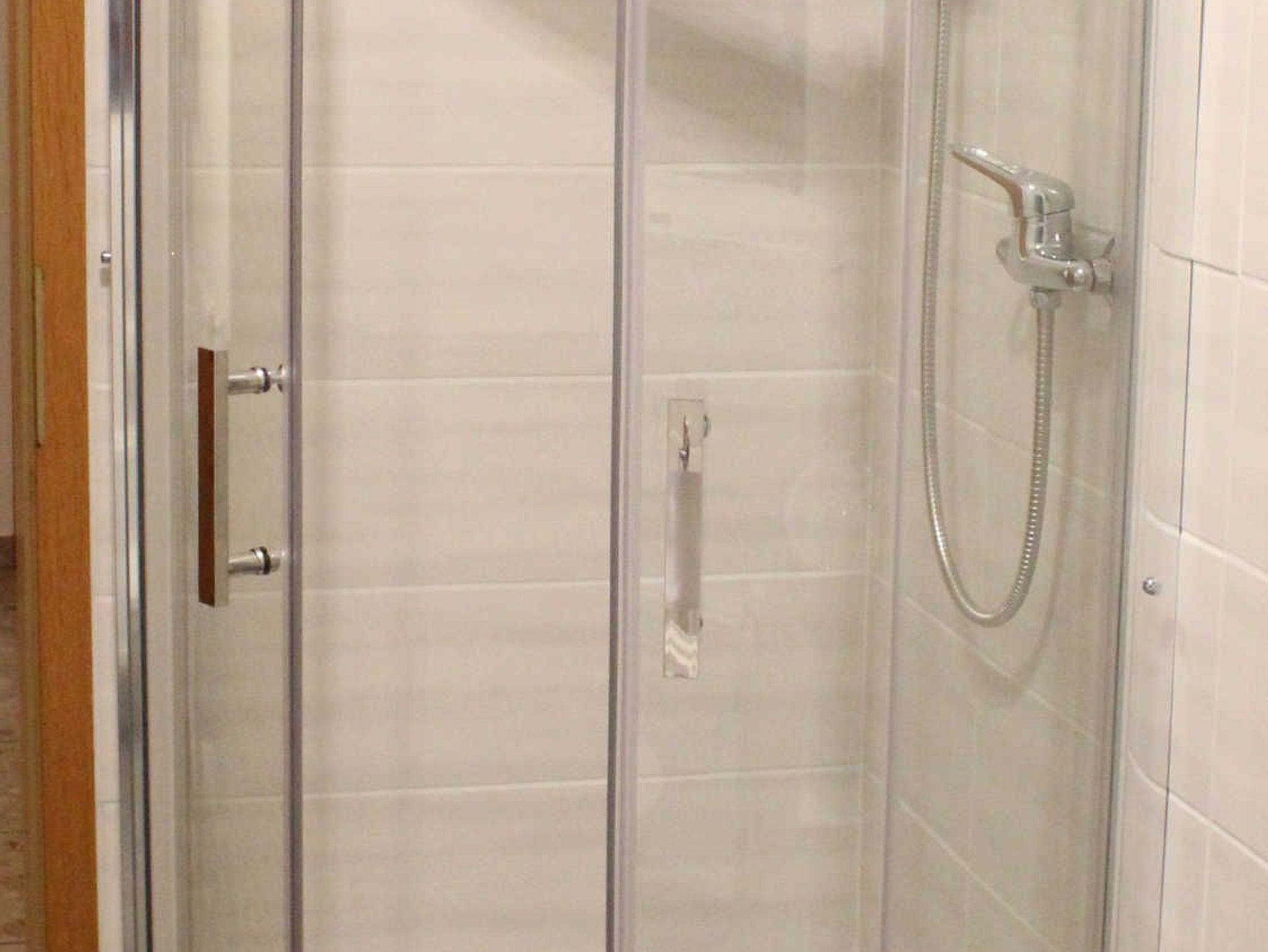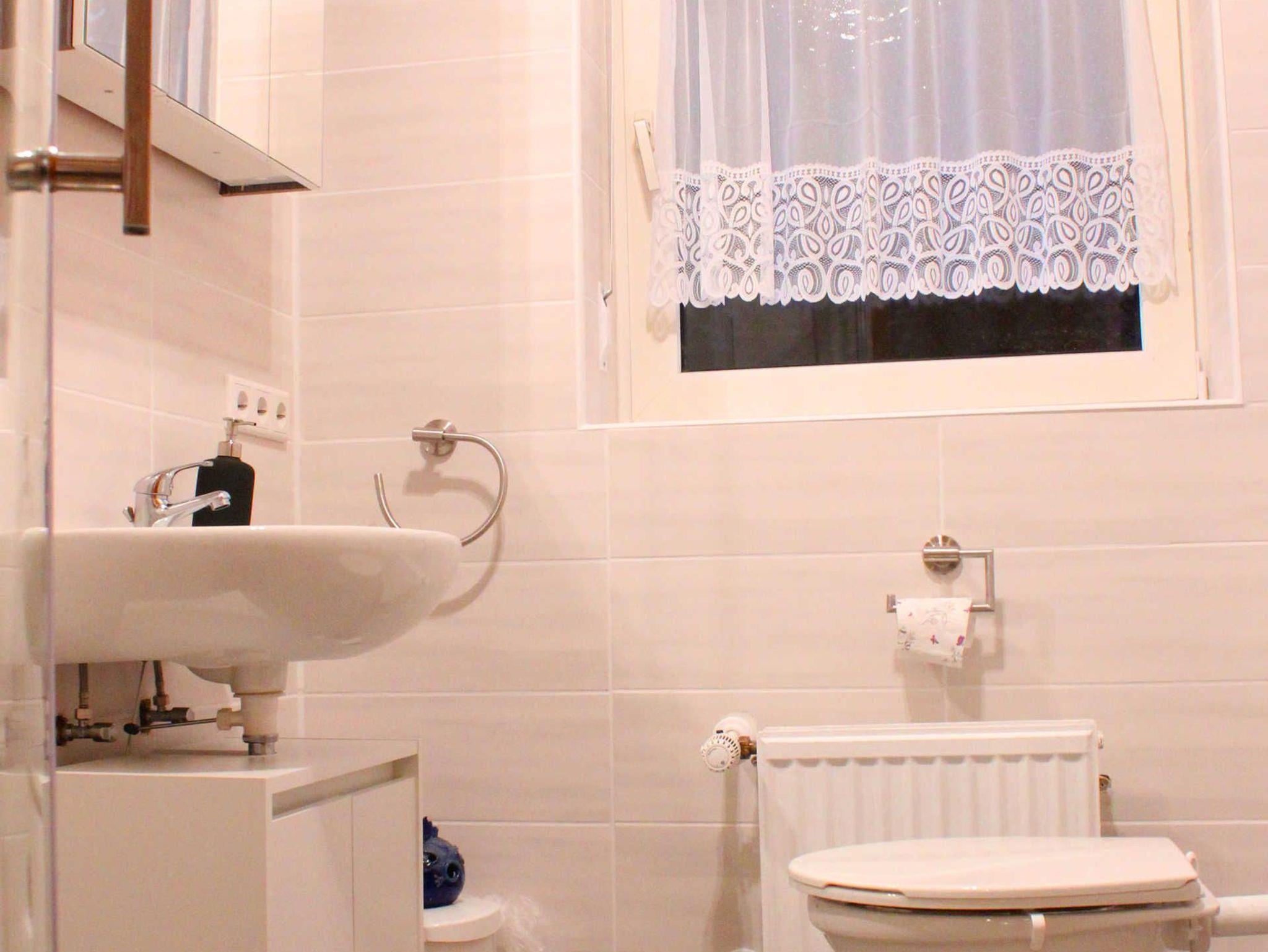 Das kleine Tageslichtbad ist eingerichtet mit Dusche, WC, Waschbecken, Kosmetikspiegel, Fön, Seife und Kosmetiktüchern. Handtücher liegen für Sie bereit.