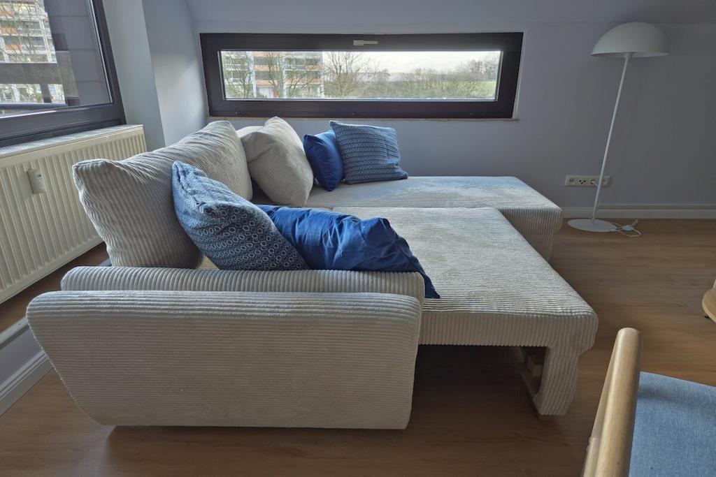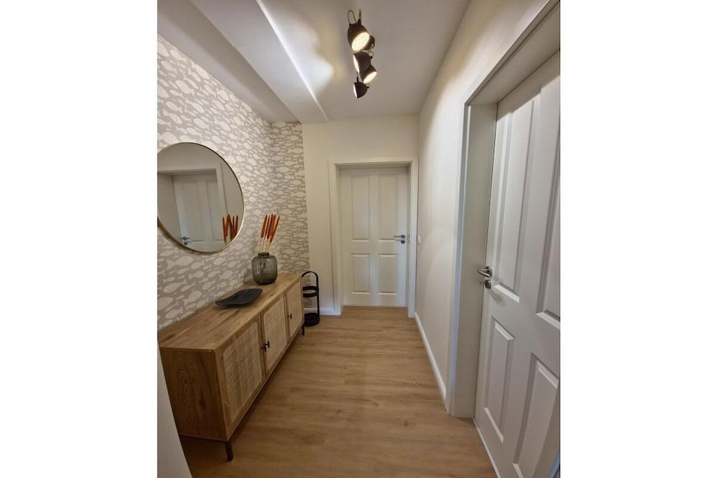 Beliggende i bakkerne i Bad Zwischenahn finder I den stilfulde ferielejlighed Stella med maritim stil. Den centrale beliggenhed giver jer mulighed for hurtigt at komme til bymidten eller det omkringliggende landskab via en idyllisk cykelsti. Lejligheden på første sal, der er tilgængelig via trapper eller elevator, blev møbleret i 2025. Fra stuen og soveværelset har I en vidunderlig udsigt over Zwischenahn-søen. Køkkenet er udstyret med køkkengrej og apparater af høj kvalitet. Spisebordet kan forlænges, hvilket giver rigelig plads til en bærbar computer, hvis I ønsker at kombinere ferie og arbejde. Stuen har et smart-tv med en gratis Netflix-konto, en lille soundbar og en sovesofa. Denne har komfortabel plads til to voksne og et lille barn. Soveværelset er møbleret med en stor 1,8 x 2 m seng og et spejl i fuld længde. Gratis brug af vaskemaskine og tørretumbler er inkluderet. For kaffeelskere er der en fuldautomatisk kaffemaskine, en moka-kande eller en klassisk drypkaffemaskine til rådighed.