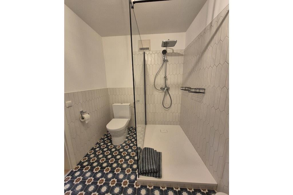 På 1. etage: (Stue(, enkeltsovesofa, Fjernsyn), soveværelse(, , enkeltsovesofa, dobbeltseng), badeværelse(, toilet, bruser, håndvask)) , , , , , Køkken, Internetadgang, Internetadgang, Førstehjælp, tørretumbler, vaskemaskine, balkon(balkon), parkering, strygebræt, strygejern, tørreskab