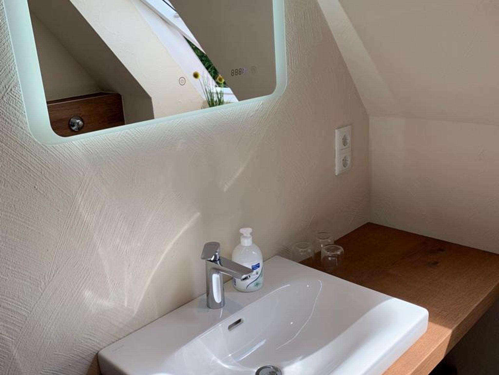Morgens ein gemütliches Frühstück, Mittags ein kleiner Salat von Ihnen zubereitet in der komplett ausgestatteten Küche und Abends vielleicht ein entspanntes Abendessen in unserem Restaurant „Der Ahrenshof“ 350m entfernt(bitte unbedingt reservieren Tel: 04403-4711). Später lassen sie den Abend bei einem Glas Wein in Ihrer gemütlichen Sofaecke ausklingen. Unsere exklusiven Boxspringbetten garantieren Ihnen danach einen erholsamen Schlaf. Hat sie das Badezimmer überrascht?