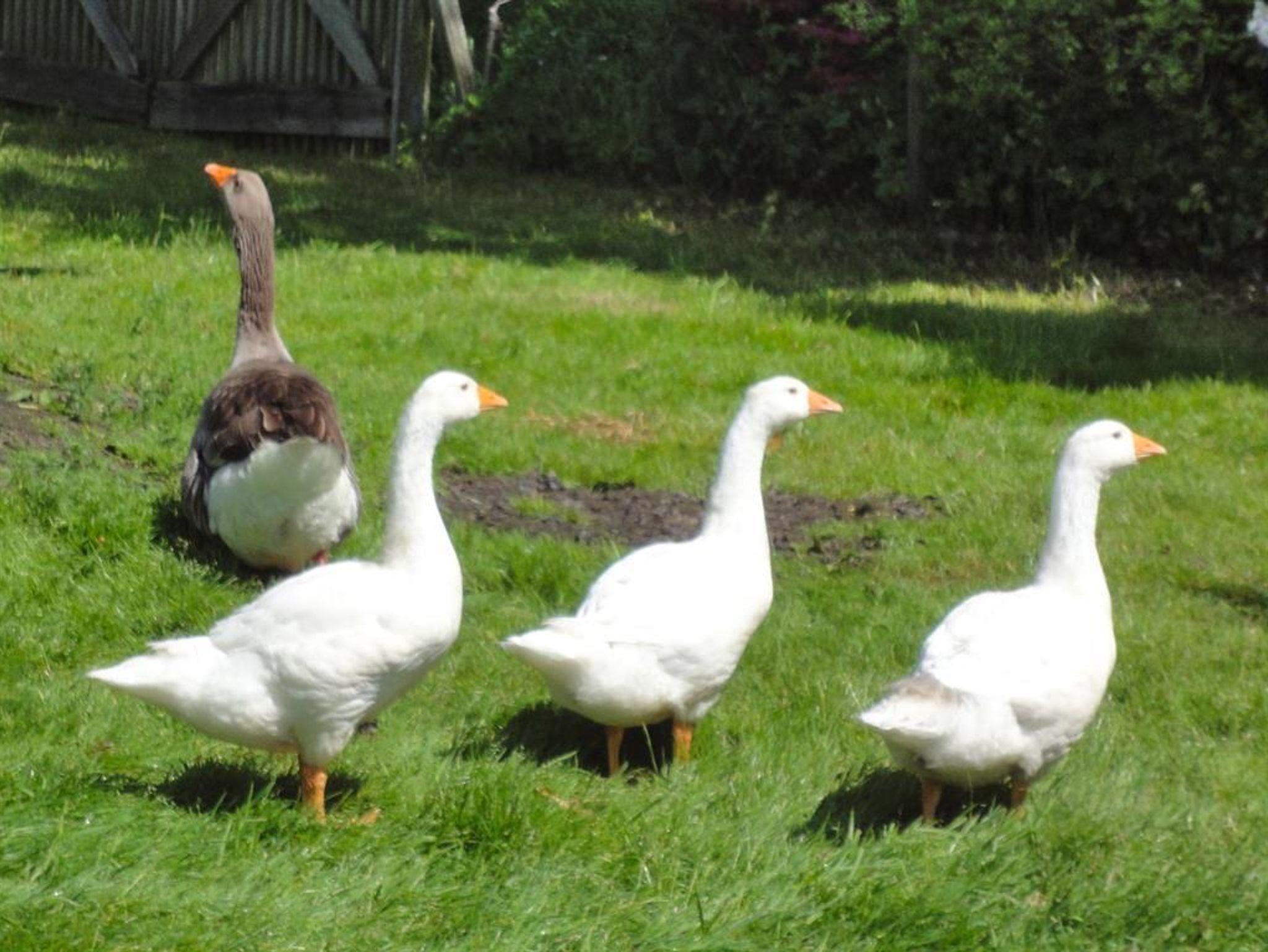 Wir wohnen im Haupthaus, sind also (fast) jederzeit ansprechbar. Unsere Liebe gilt dem Garten und dem Anbau von Obst und Gemüse. Daneben freuen wir uns an unseren Hühnern, Enten und Gänsen.