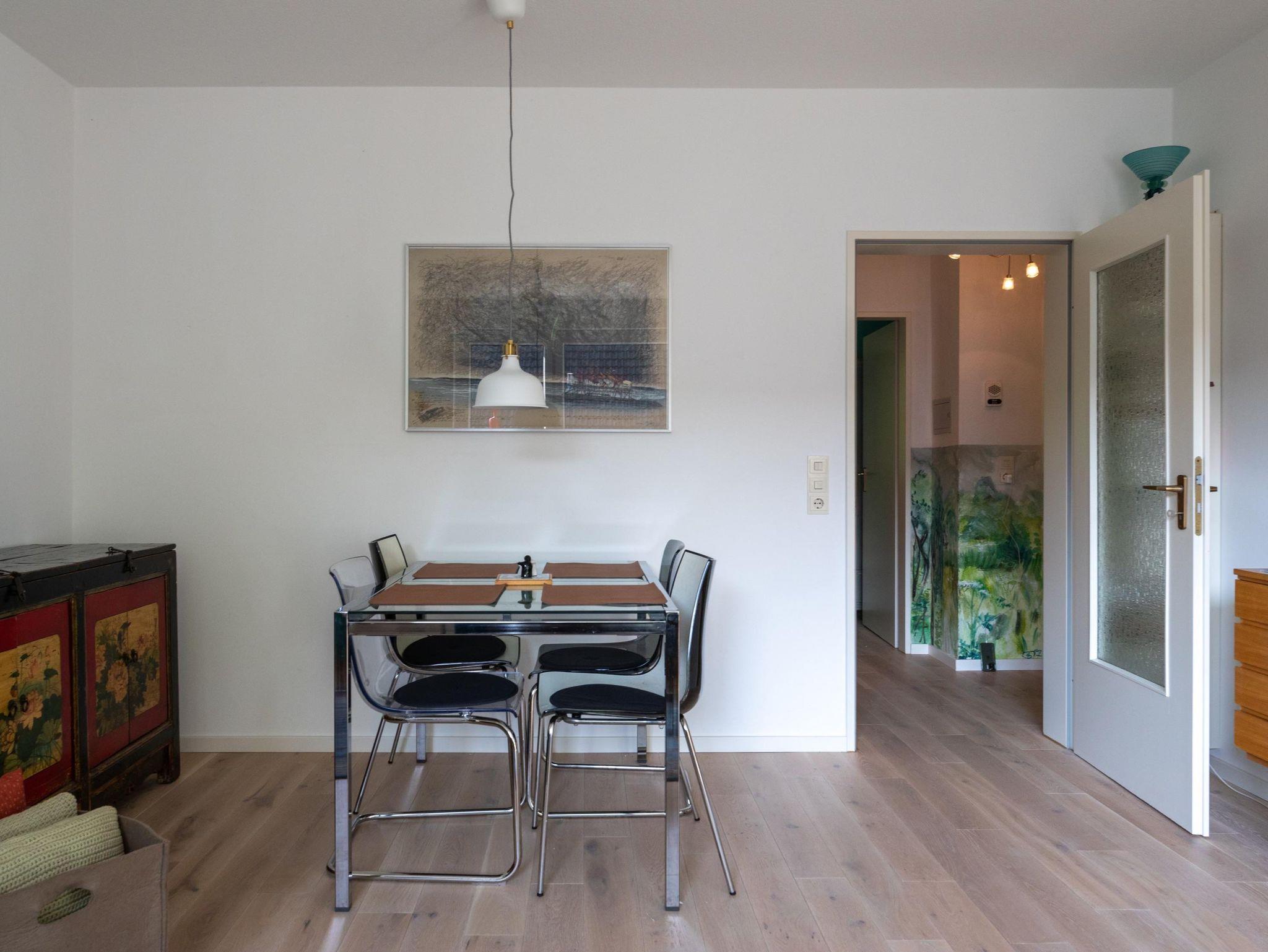Das Apartment besteht aus zwei Zimmern und einer Küche. Im Schlafzimmer finden Sie ein Doppelbett sowie einen Arbeitsplatz. W-Lan ist vorhanden. Das Wohnzimmer ist ausgestattet mit einem Esstisch für bis zu sechs Personen, hier finden auch zwei weitere Gäste auf einem Ausziehsofa einen Schlafplatz. Ein Fernseher mit den Annehmlichkeiten von magenta TV und eine Musikanlage befinden sich ebenfalls im Wohnzimmer. In der Küche besteht zudem die Möglichkeit zu Essen.