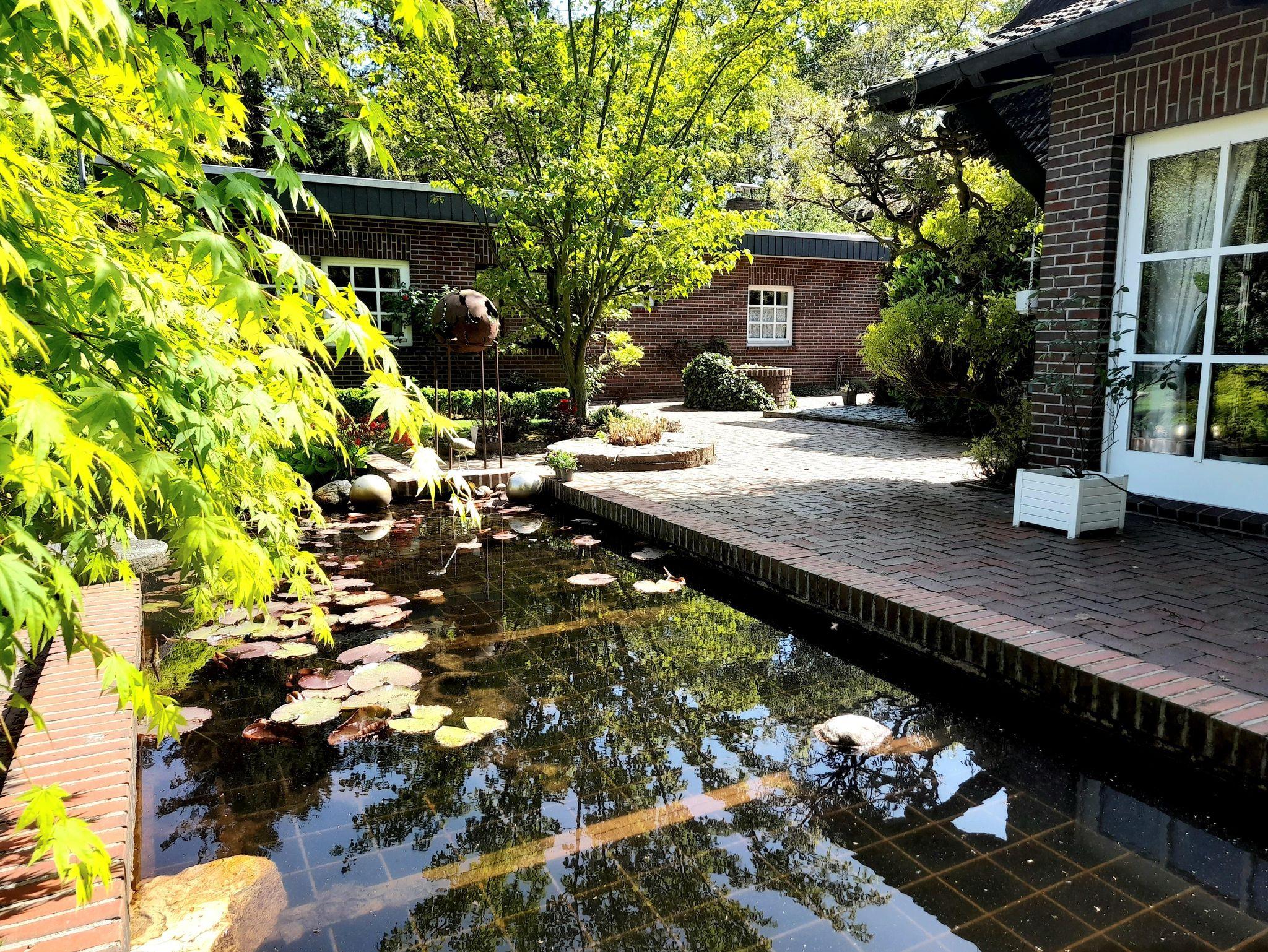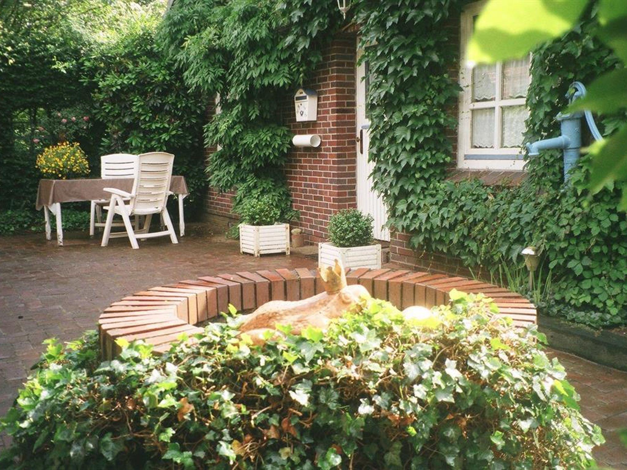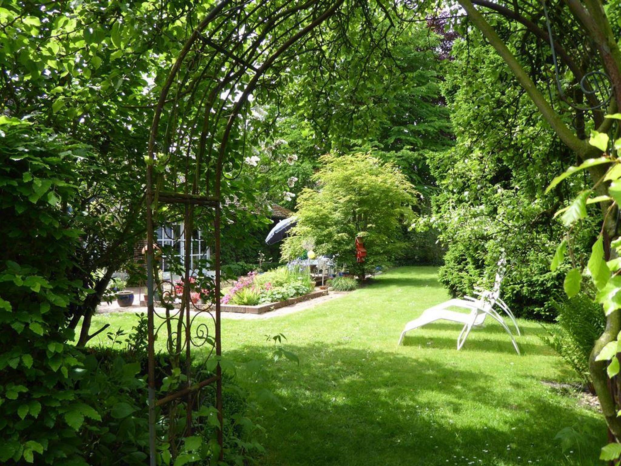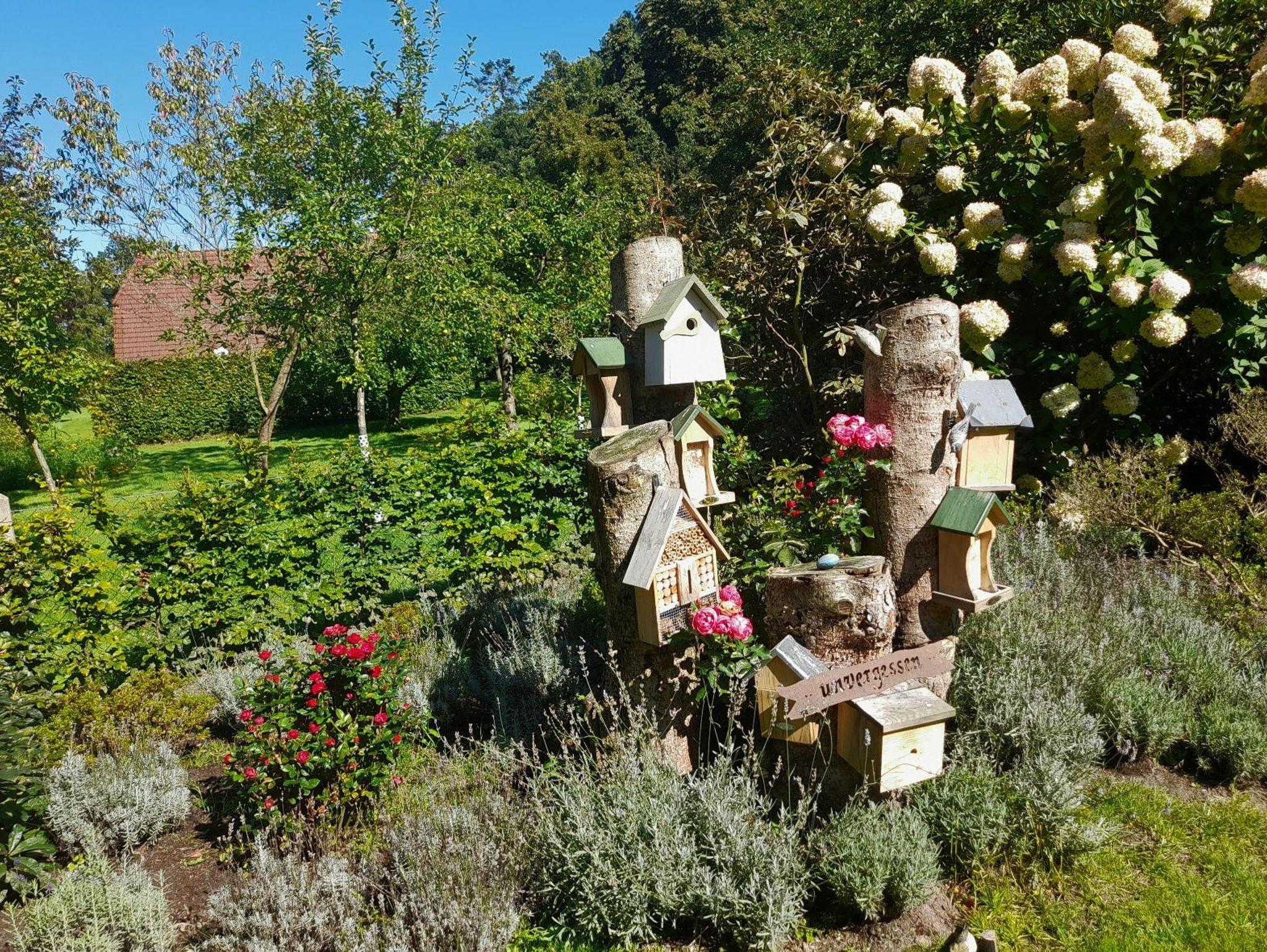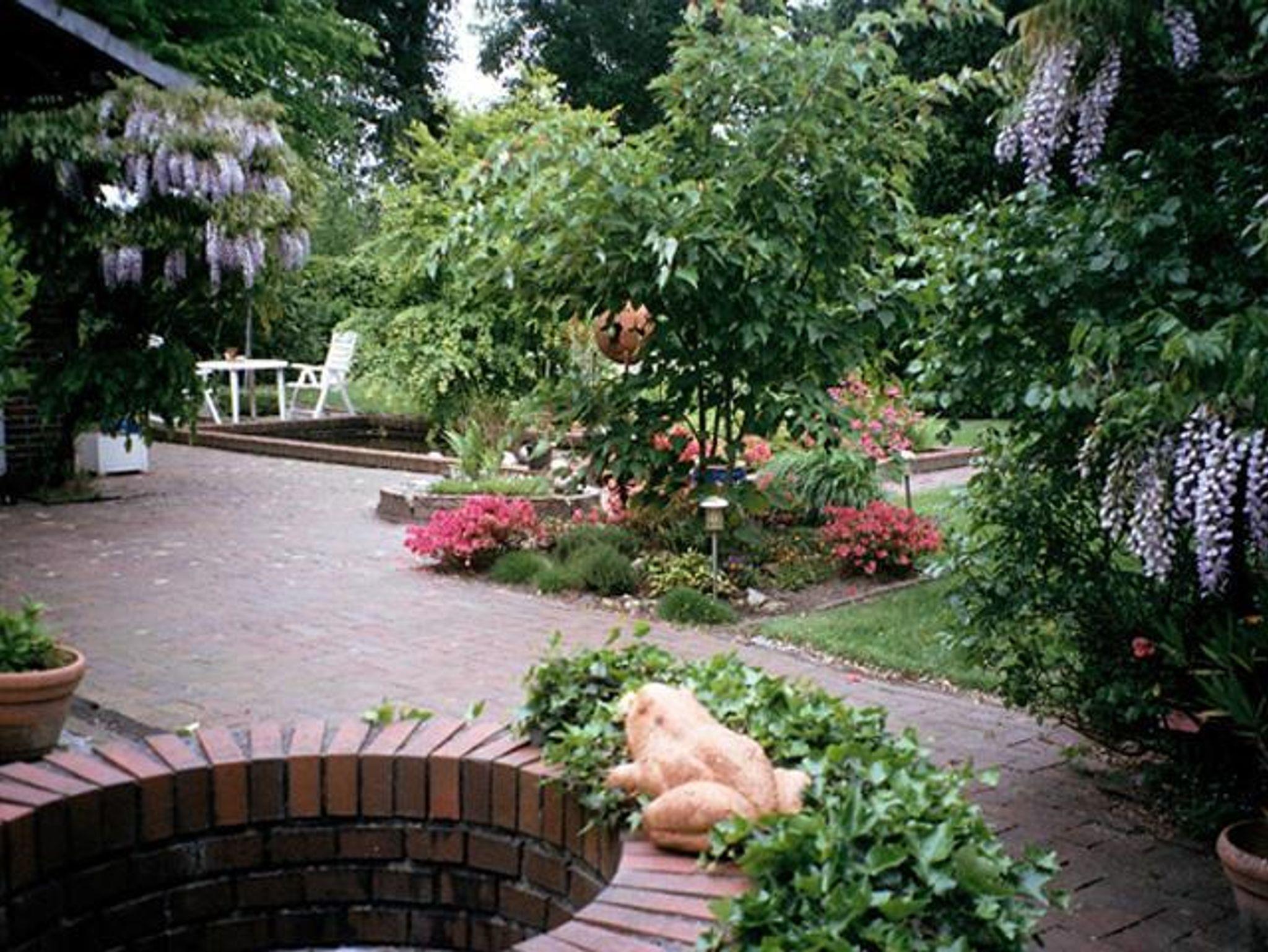 Einfamilienhaus aus Natur-Klinkerstein mit Sprossenfenstern auf 2200 qm großem parkähnlichem Grundstück mit Ferienwohnung. Die Ferienwohnung besteht aus einem Wohn-/Schlafraum mit Kochnische, einem Badezimmer (mit ebenerdiger Dusche), einer Toilette und einem kleinen Flur mit separatem Eingang (Frühjahr 2019 vollkommen renoviert). Sie können eine große Gästeterrasse mit Gartenmöbeln und einem alten Brunnen im Innenhof, direkt vor der Ferienwohnung, zum Entspannen nutzen. Eine weitere Gästeterrasse mit Gartenmöbeln und Liegestühlen befindet sich im gästeeigenen Garten mit Holzhütte (1 Raum) mit Obstbäumen, Buchsbaumhecken und Hainbuchenhecken in sehr ruhiger Lage. Von der Terrasse des Gästegartens können Sie durch einen Rosenbogen auf den bewaldeten Hühnerhof des Nachbarn schauen und bei einer Tasse Tee den Alltag vergessen. Urlaub für die Seele!