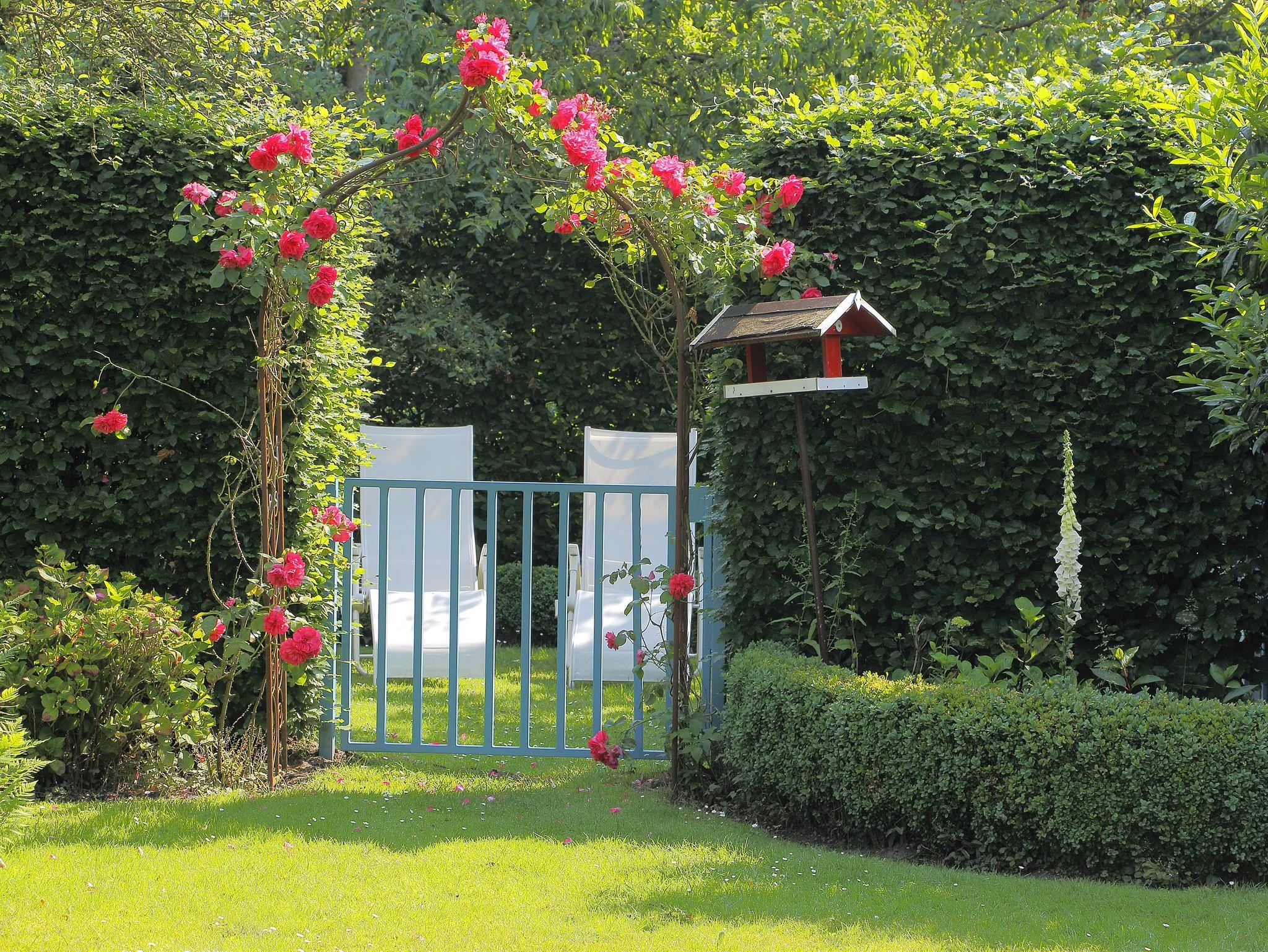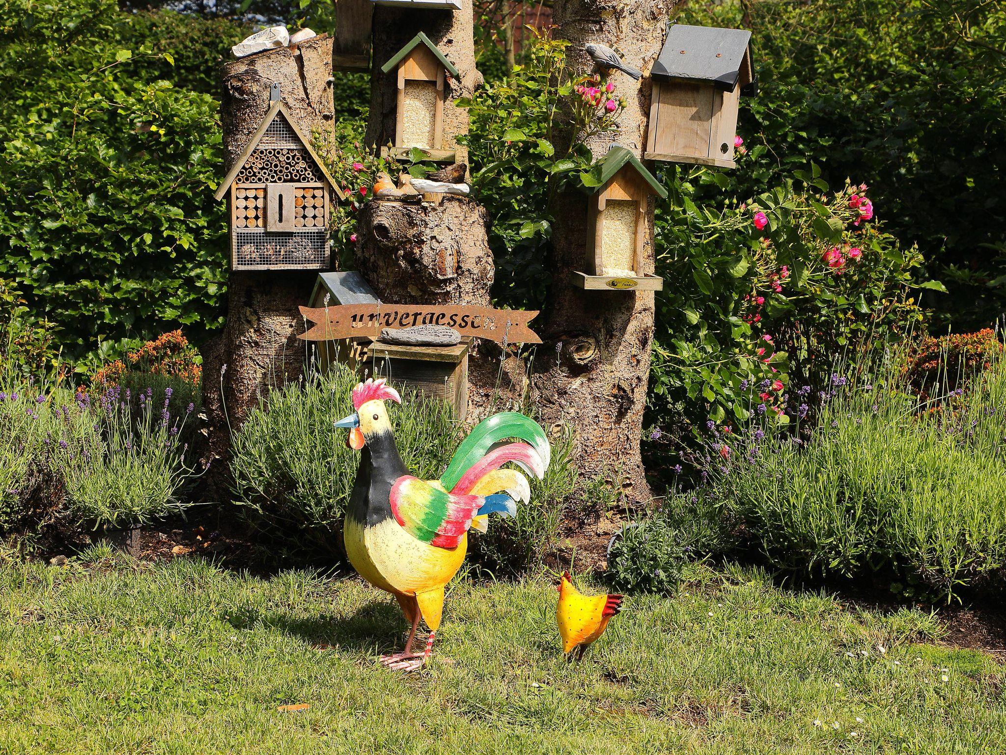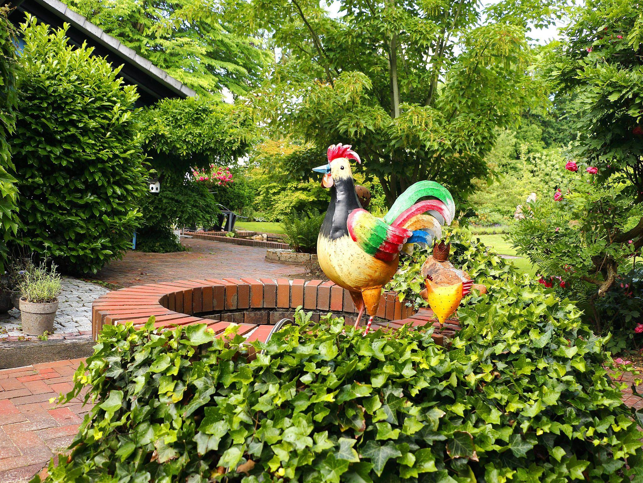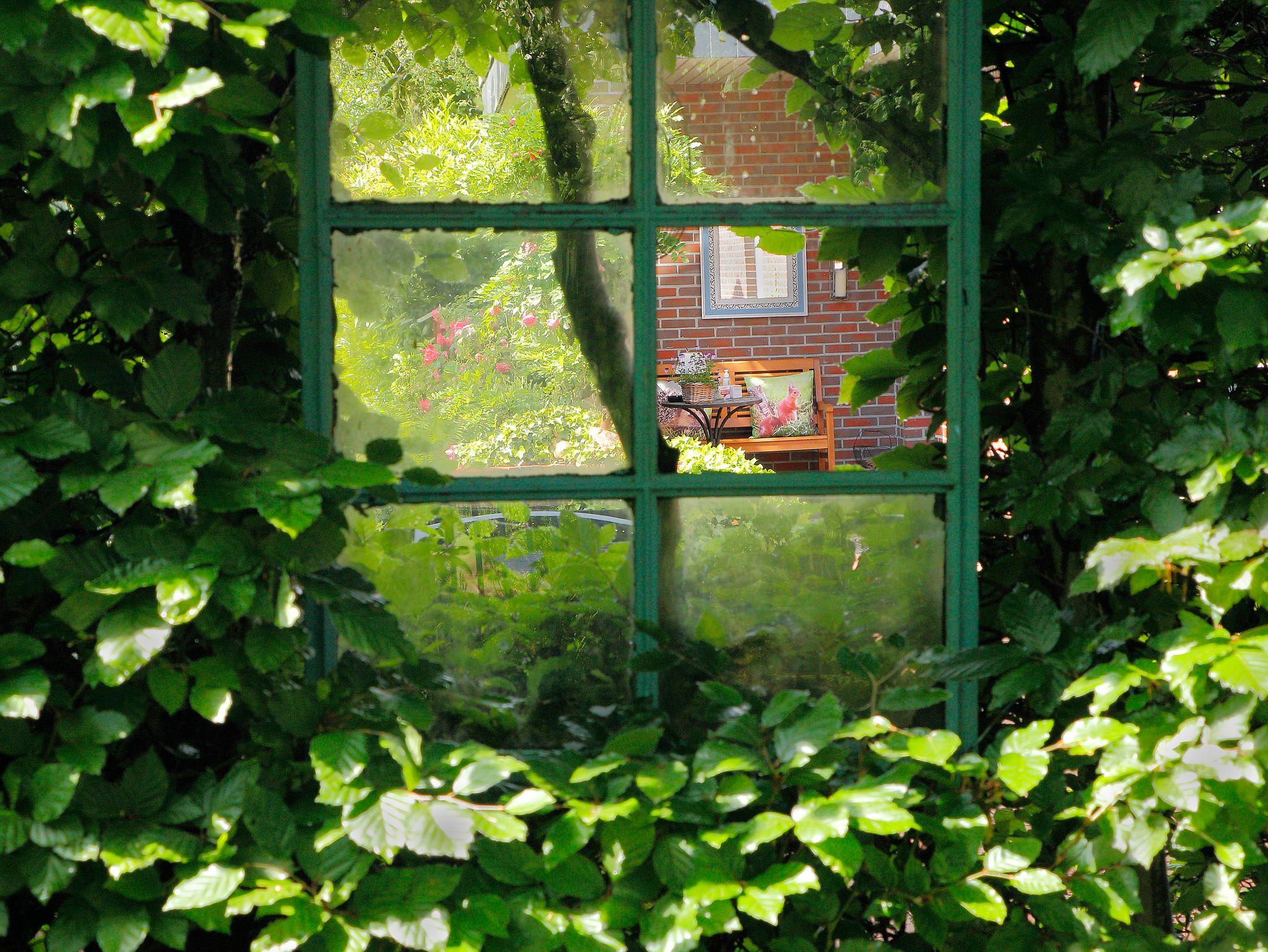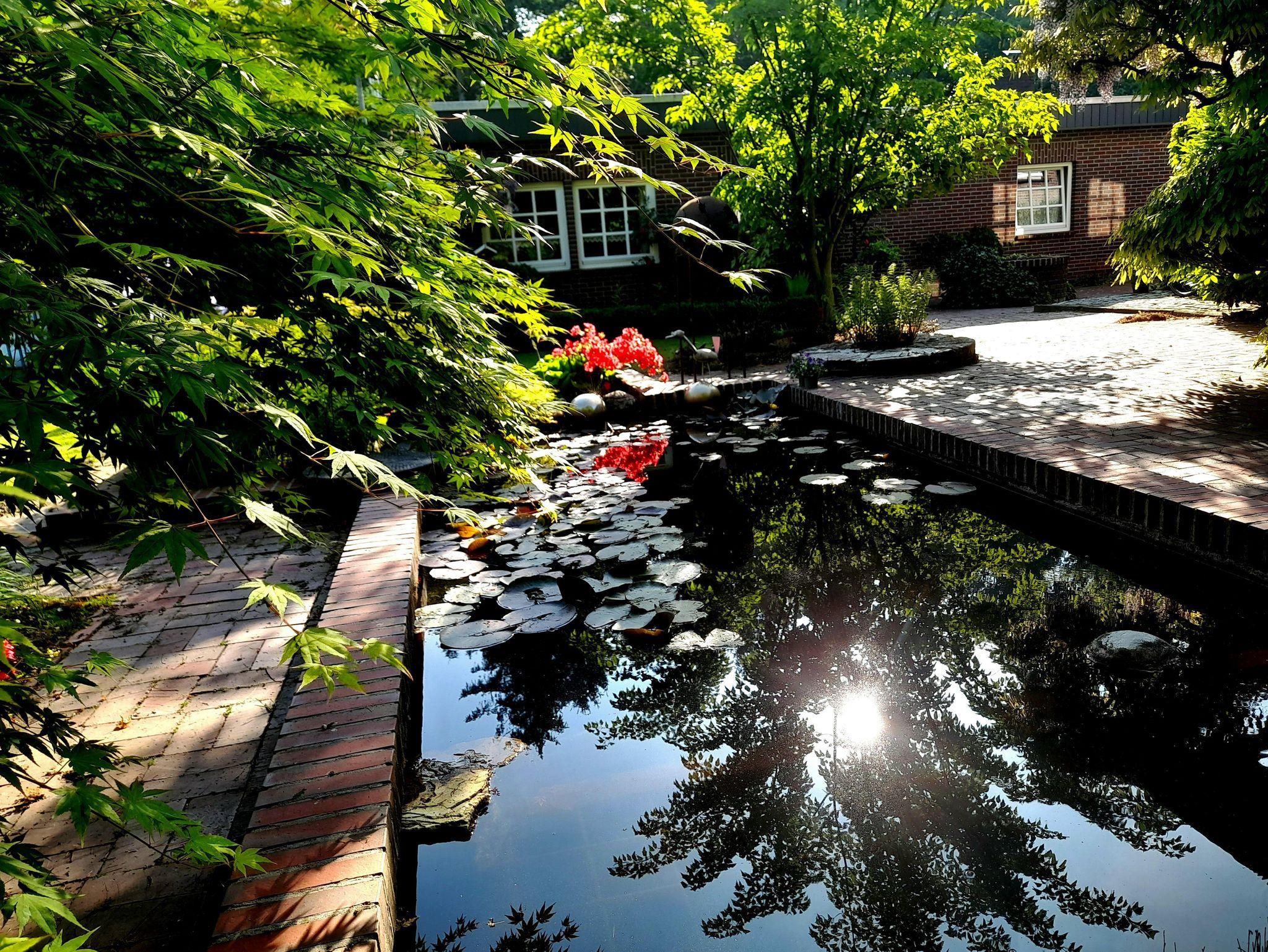 Einfamilienhaus aus Natur-Klinkerstein mit Sprossenfenstern auf 2200 qm großem parkähnlichem Grundstück mit Ferienwohnung. Die Ferienwohnung besteht aus einem Wohn-/Schlafraum mit Kochnische, einem Badezimmer (mit ebenerdiger Dusche), einer Toilette und einem kleinen Flur mit separatem Eingang (Frühjahr 2019 vollkommen renoviert). Sie können eine große Gästeterrasse mit Gartenmöbeln und einem alten Brunnen im Innenhof, direkt vor der Ferienwohnung, zum Entspannen nutzen. Eine weitere Gästeterrasse mit Gartenmöbeln und Liegestühlen befindet sich im gästeeigenen Garten mit Holzhütte (1 Raum) mit Obstbäumen, Buchsbaumhecken und Hainbuchenhecken in sehr ruhiger Lage. Von der Terrasse des Gästegartens können Sie durch einen Rosenbogen auf den bewaldeten Hühnerhof des Nachbarn schauen und bei einer Tasse Tee den Alltag vergessen. Urlaub für die Seele!