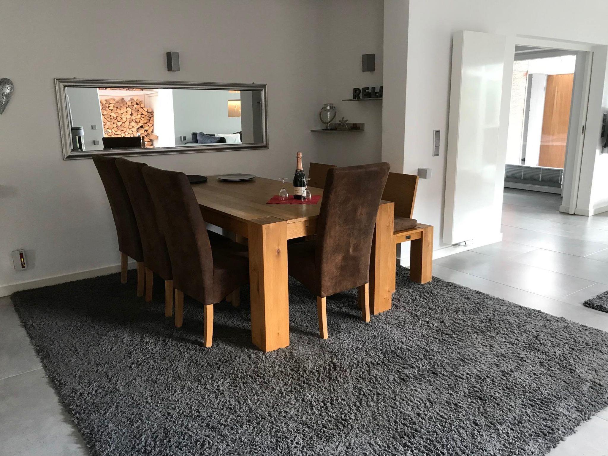 Die Ferienwohnung eignet sich perfekt für zwei Personen. Es können bei Bedarf auch vier Personen übernachten. Dazu steht im Ankleidezimmer eine Schlafcouch.Der großzügige Wohn- und Essbereich ist mit einem Kamin ausgestattet.