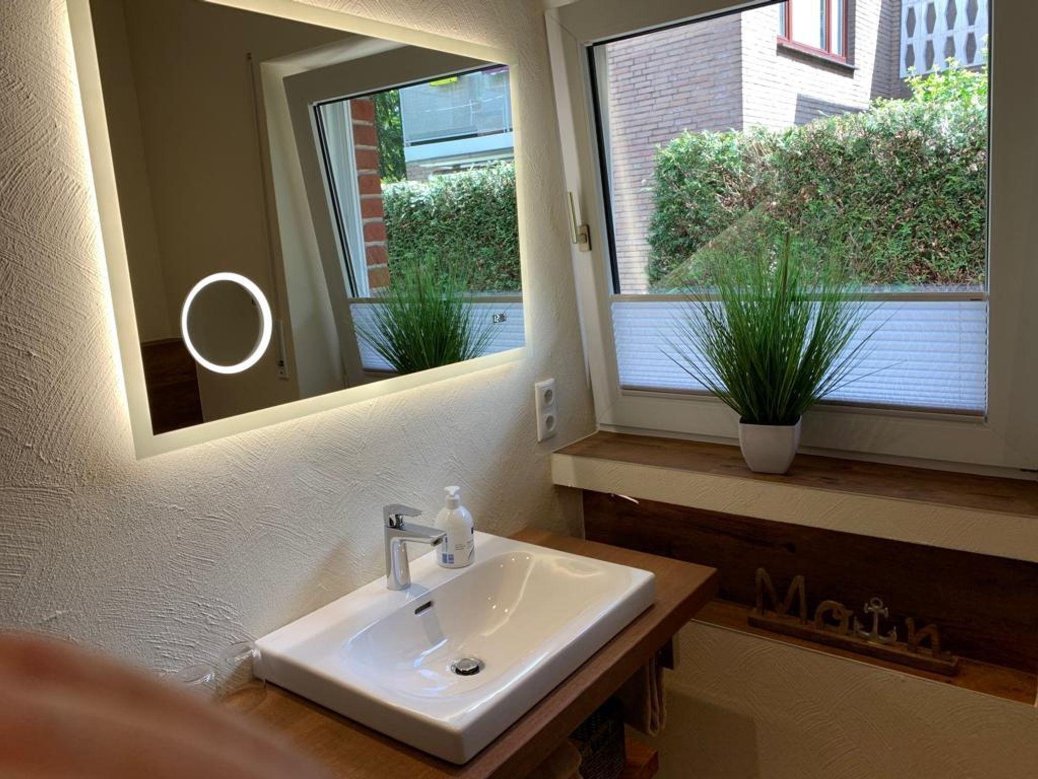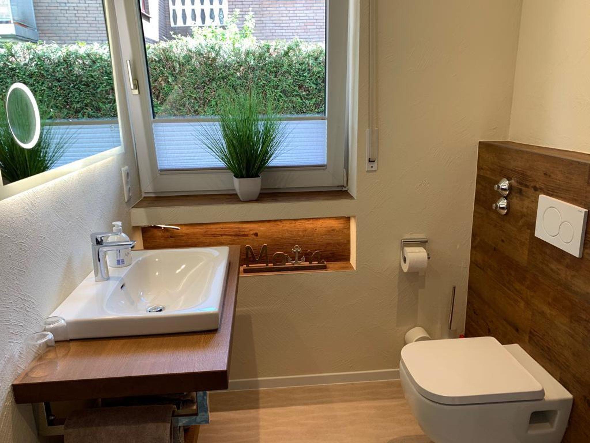 Morgens ein gemütliches Frühstück, Mittags ein kleiner Salat von Ihnen zubereitet in der komplett ausgestatteten Küche und Abends vielleicht ein entspanntes Abendessen in unserem Restaurant „Der Ahrenshof“350 m entfernt (bitte unbedingt reservieren Tel: 04403-4711). Später lassen sie den Abend bei einem Glas Wein in Ihrer gemütlichen Sofaecke ausklingen. Unsere exklusiven Boxspringbetten garantieren Ihnen danach einen erholsamen Schlaf. Hat sie das Badezimmer überrascht?
