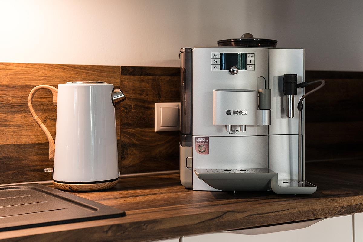 Das Herzstück der Ferienwohnung ist der großzügige, offene Wohn-Essbereich, der mit einer modernen, voll ausgestatteten hellen Küche mit E-Herd, Mikrowelle, Backofen und Spülmaschine, keine Wünsche offen lässt. Starten Sie Ihren Tag mit einem frisch gemahlenen Kaffee aus dem bereit-stehenden Kaffee-Vollautomaten.