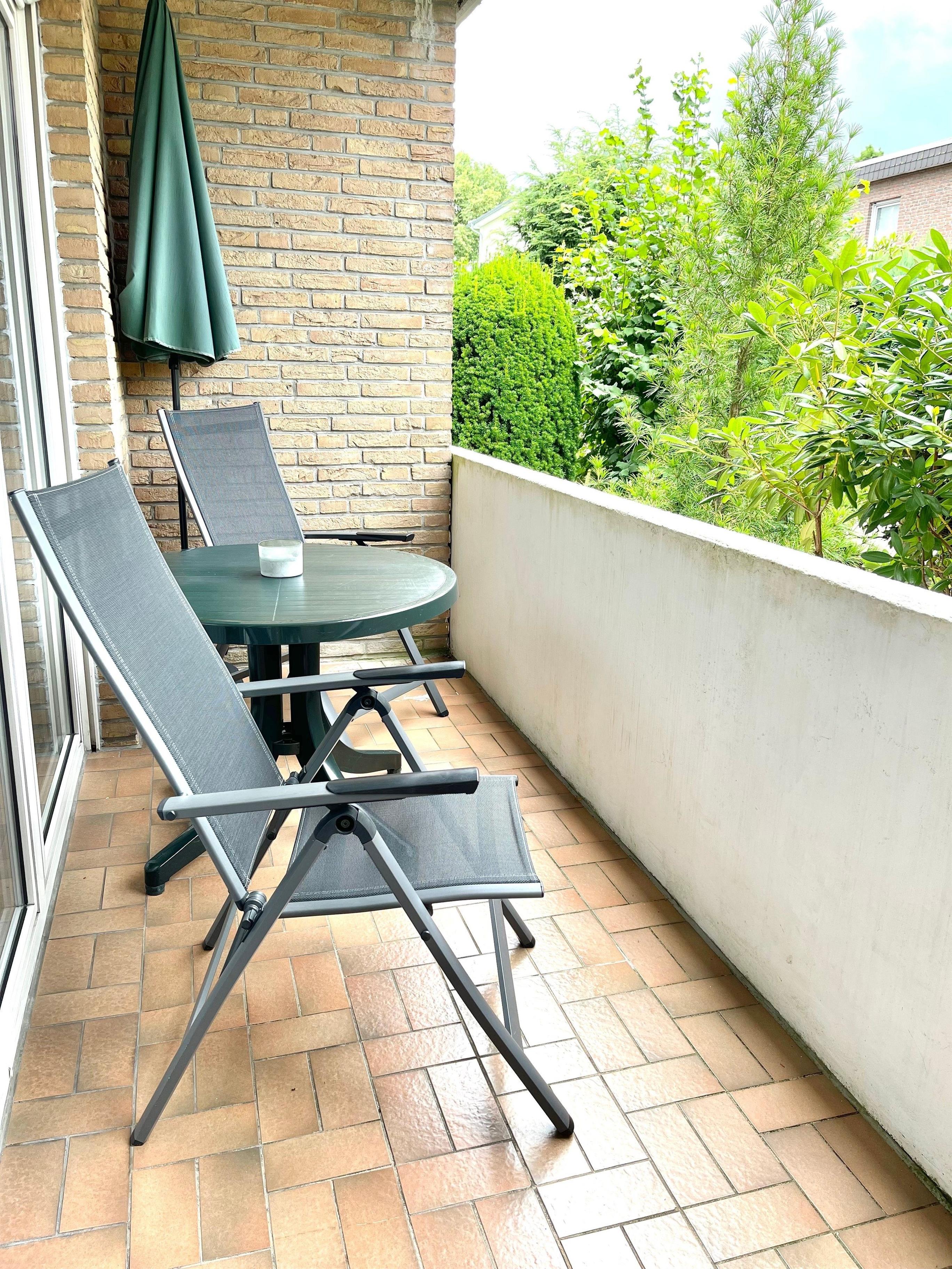 Der Balkon der Fewo ist mit entsprechenden Balkonmöbeln incl. Sonnenschirm ausgestattet.