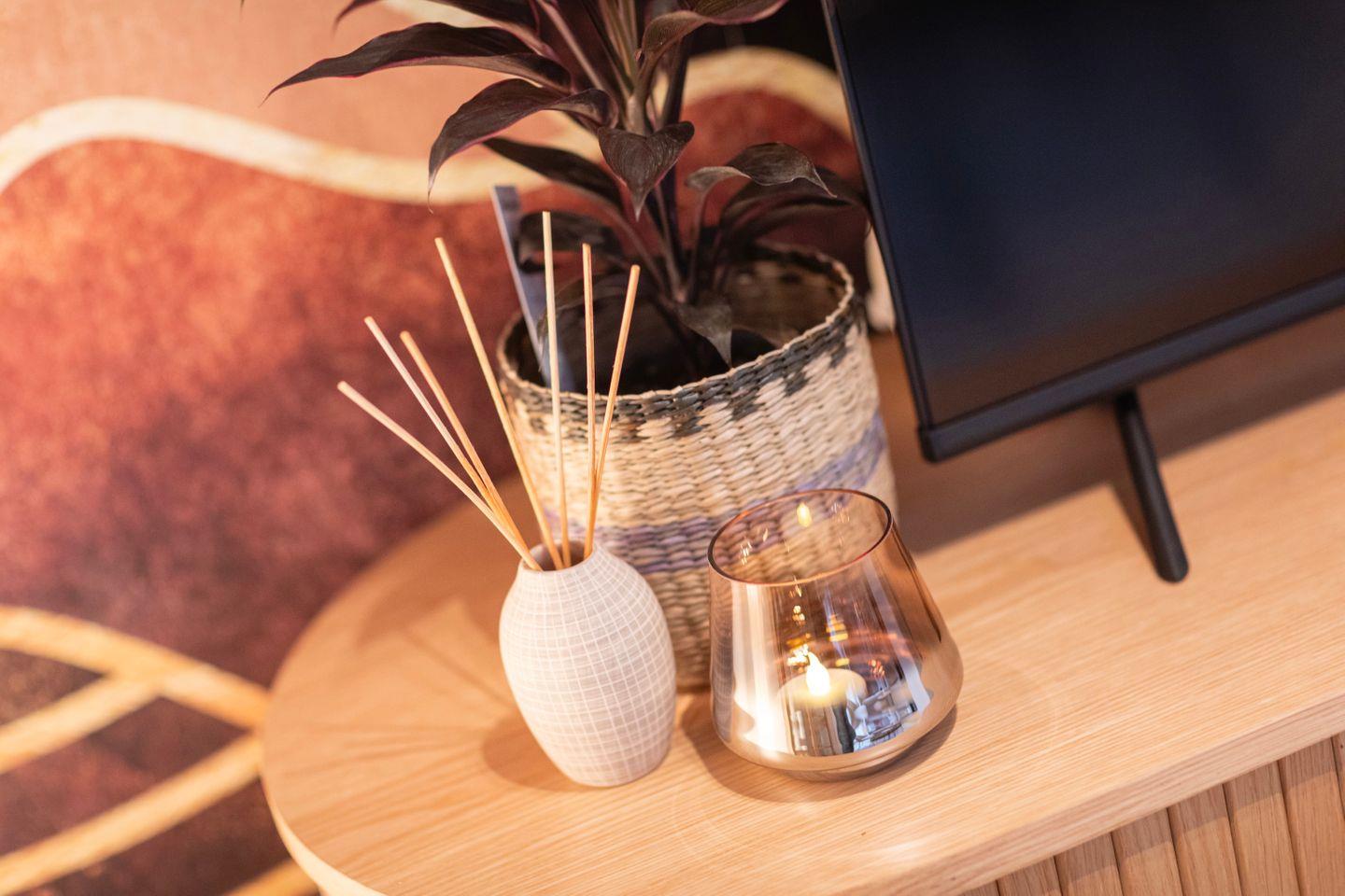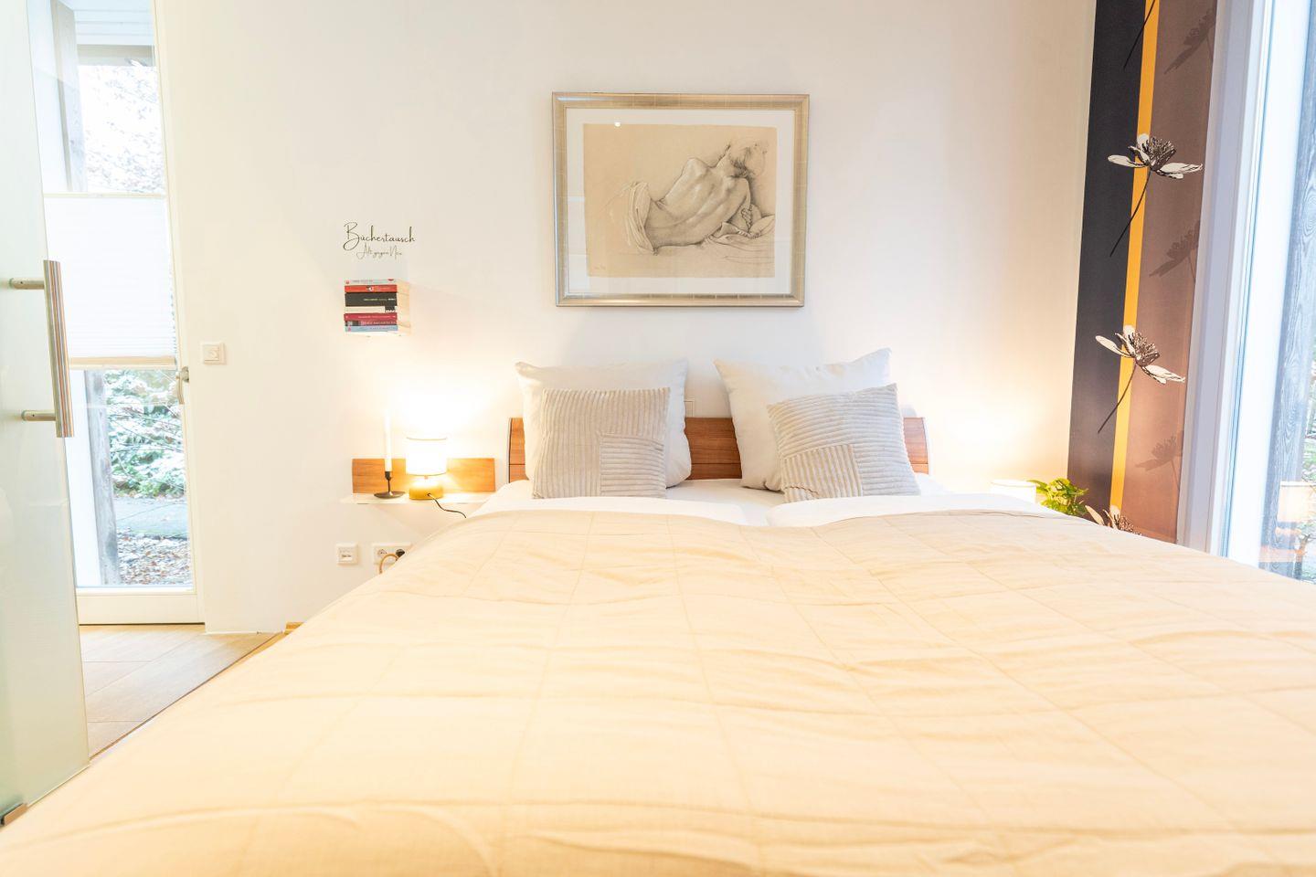 Das Schlafzimmer verfügt über ein gemütliches 1,80m Doppelbett. Im Wohnzimmer findest Du nicht nur hochwertige Schlafcouch, die sich perfekt für Familienbesuche eignet, sondern ebenso einen großen Essbereich für 4 Personen sowie einen gemütlichen Sitzbereich mit Sofa und einem TV. Hier ist sowohl Raum für einen gemütlichen Fernsehabend, wie auch die Möglichkeit eines Spieleabends mit deinen Liebsten.