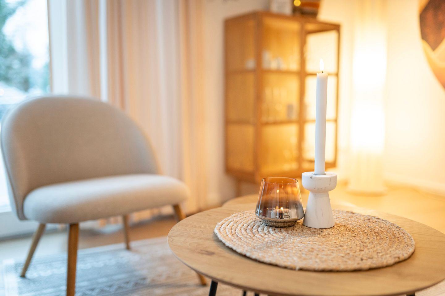 Du kannst deinen Tag mit leckerem Kaffee beginnen und all die schönen Annehmlichkeiten dieses Apartments genießen, inklusive der großen Terrasse mit exklusivem Seeblick, großzügigem Sitzbereichen für 4 Personen, einem Grill und einer Sauna auf der Anlage sowie einer tollen Aussicht in die Natur.