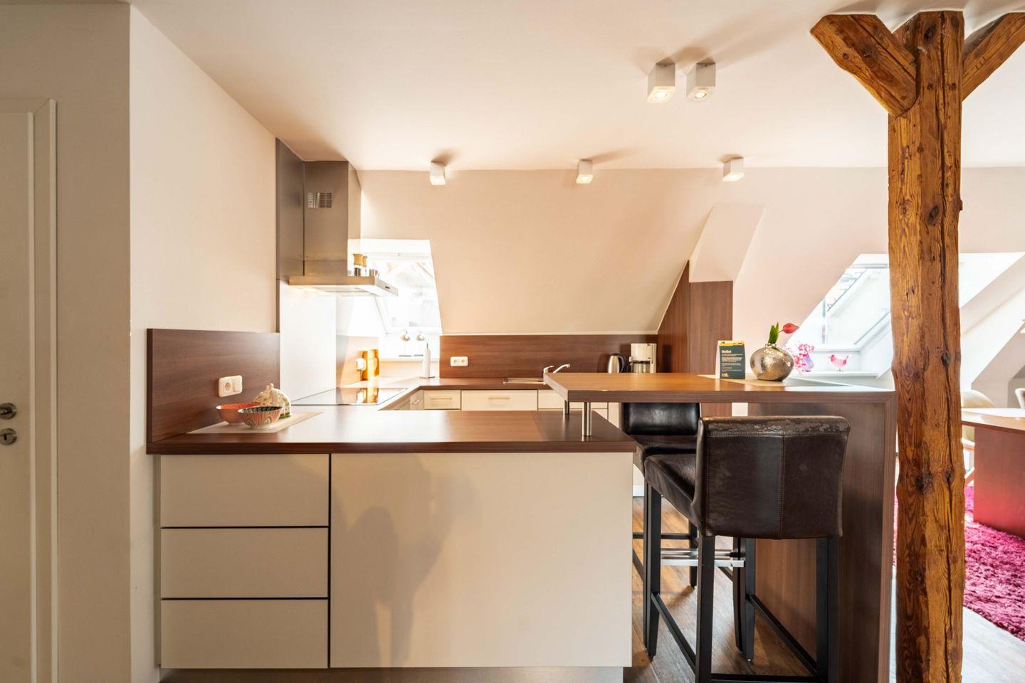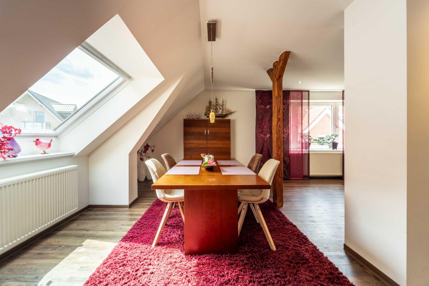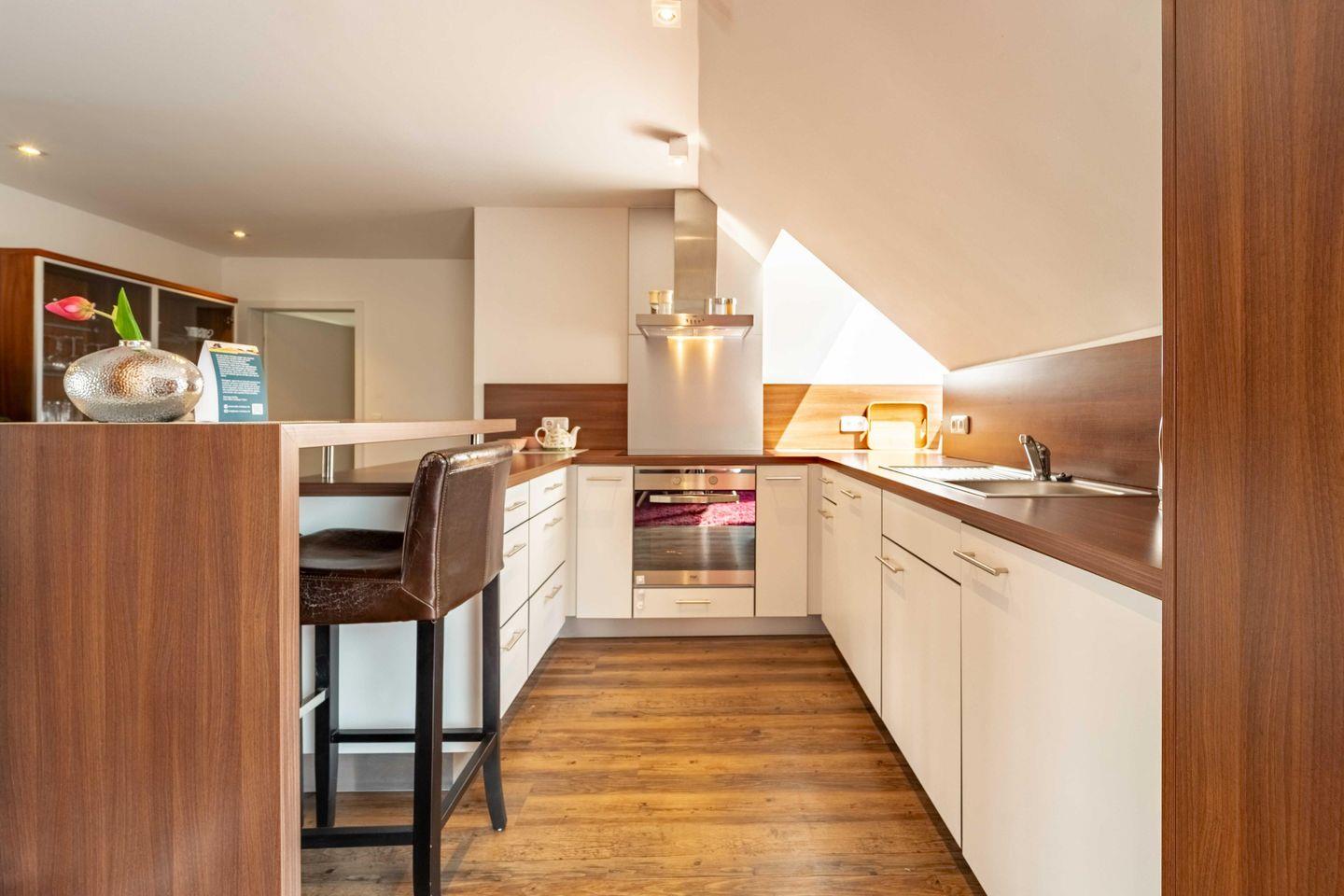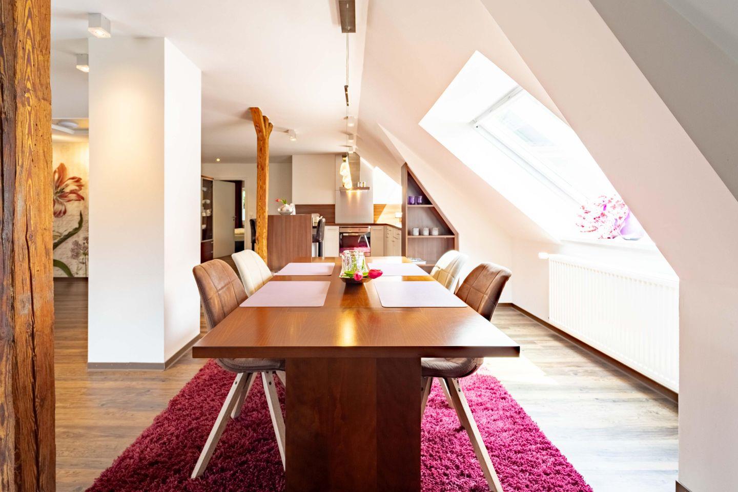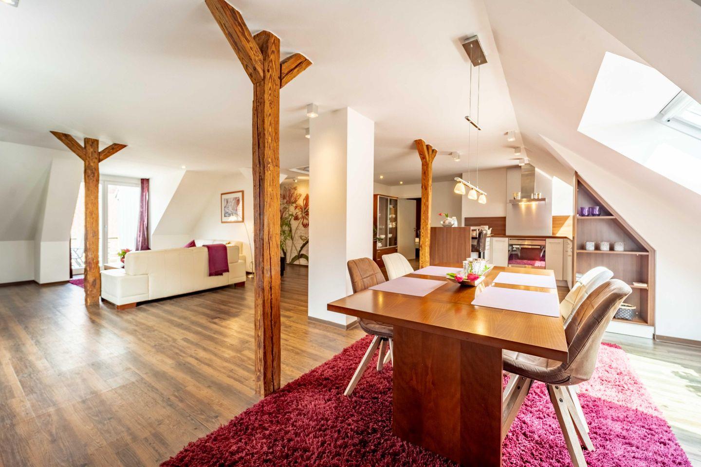 Das Herzstück der Wohnung ist das helle und großzügige Wohn- und Esszimmer mit offener, moderner Küche. Hier kannst Du gemütliche Abende verbringen oder einfach nur die entspannte Atmosphäre genießen. Die gut ausgestattete Küche bietet Dir alles, was Du zum Kochen benötigst.