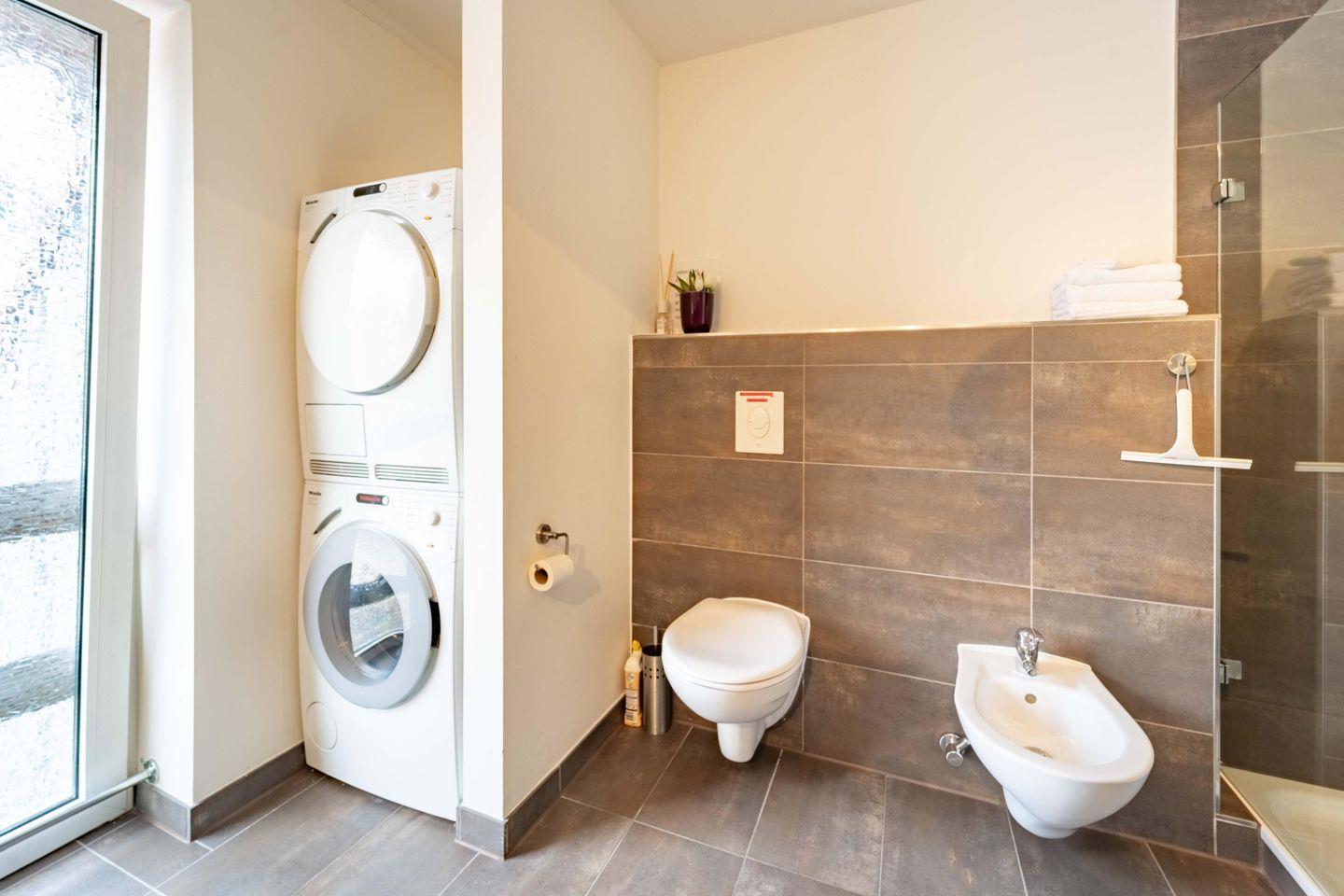 Das Hauptschlafzimmer dient als idealer Rückzugsort nach einem erlebnisreichen Tag und ist mit einem bequemen Doppelbett ausgestattet. Das zweite Schlafzimmer bietet ein 140 cm breites Futon-Bett und einen Schreibtisch, perfekt für Kinder oder als Arbeitsbereich. Das geräumige Badezimmer ist mit Toilette, Dusche, Bidet sowie privater Waschmaschine mit Trockner sehr gut ausgestattet.