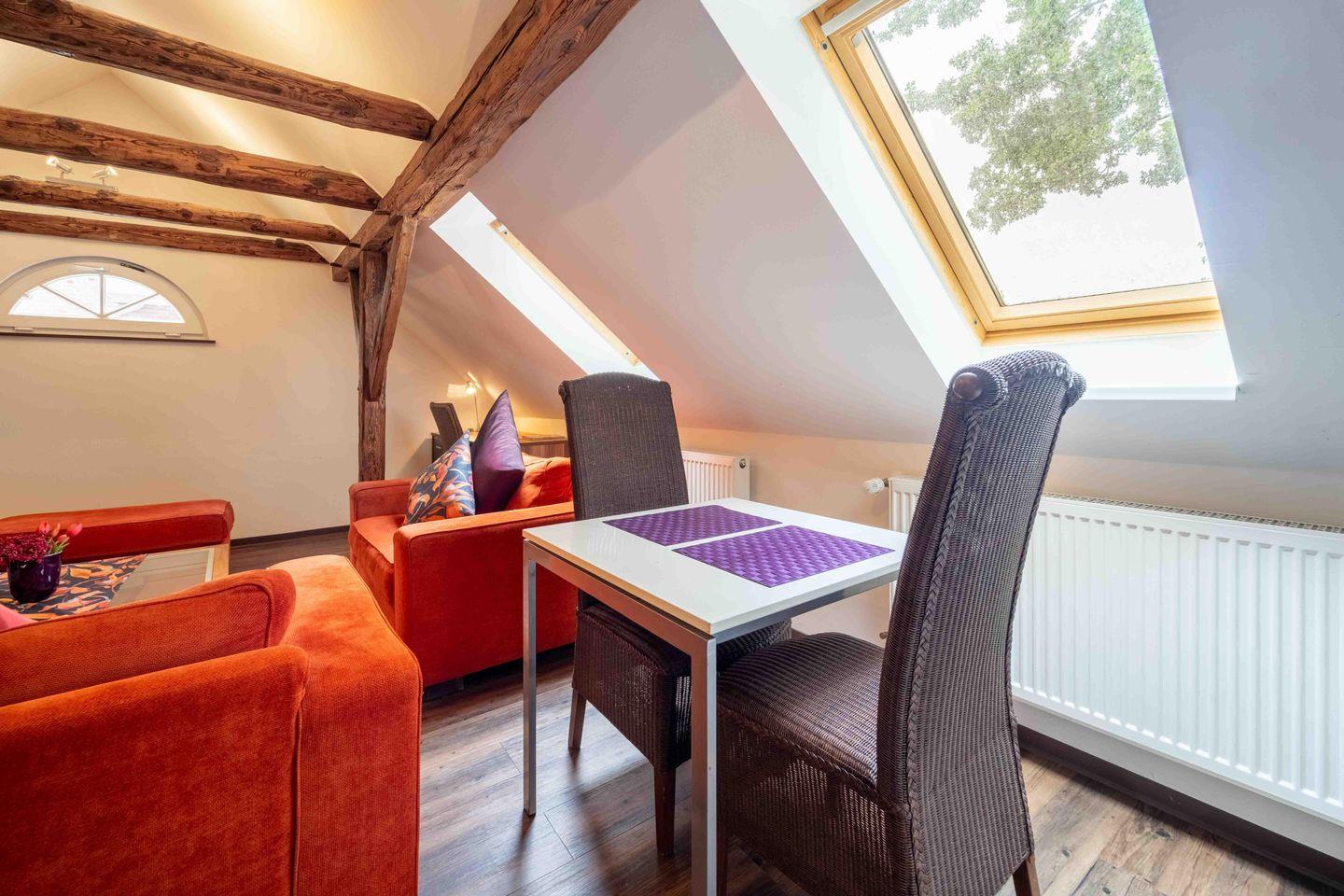 Diese gemütliche 1-Zimmer-Wohnung „Petit Superior“ bietet auf 45 qm alles, was Du für einen unvergesslichen Aufenthalt benötigst. Der offene Wohnbereich über zwei Ebenen beeindruckt mit besonderen Holzbalken und einem großzügigen Sitzbereich. Ideal für Paare oder Alleinreisende, besticht die Wohnung durch ihre zentrale Lage im Herzen von Bad Zwischenahn, nur wenige Schritte von Restaurants und Freizeitmöglichkeiten entfernt. Check-in ab 15 Uhr über Schlüsselbox, Haustiere nicht erlaubt.