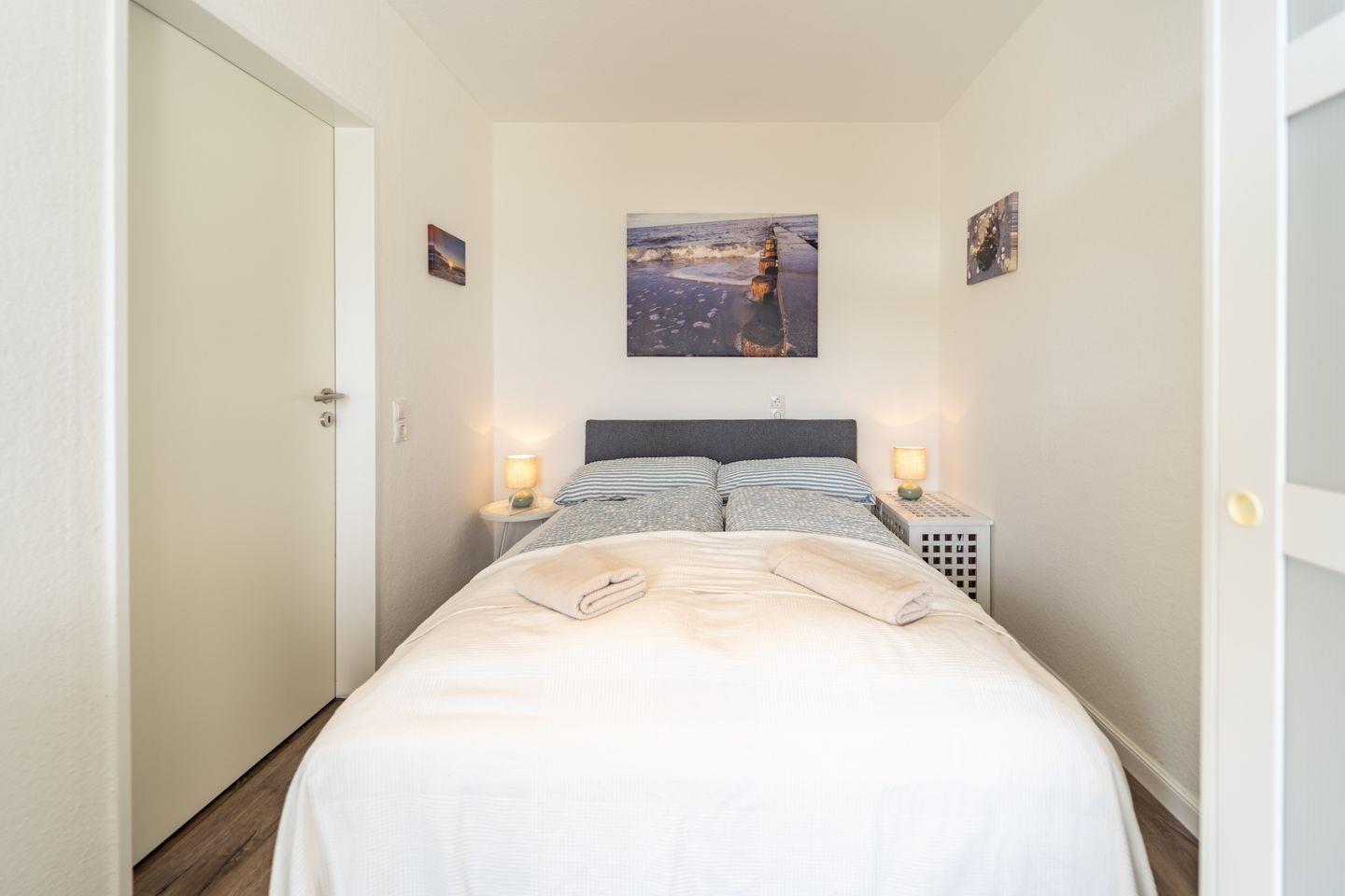 Im Schlafzimmer erwartet dich ein komfortables Doppelbett für erholsame Nächte. Das moderne Badezimmer verfügt über eine Dusche und WC. WLAN steht in der gesamten Wohnung kostenfrei zur Verfügung.