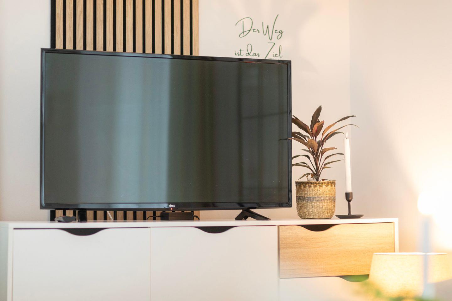 Das Schlafzimmer verfügt über ein gemütliches 1,60m Doppelbett. Im Wohnzimmer findest Du nicht nur hochwertige Schlafcouch, die sich perfekt für Familienbesuche eignet, sondern ebenso einen großen Essbereich für 4 Personen sowie einen gemütlichen Sitzbereich mit Sofa und einem TV. Hier ist sowohl Raum für einen gemütlichen Fernsehabend, wie auch die Möglichkeit eines Spieleabends mit deinen Liebsten.