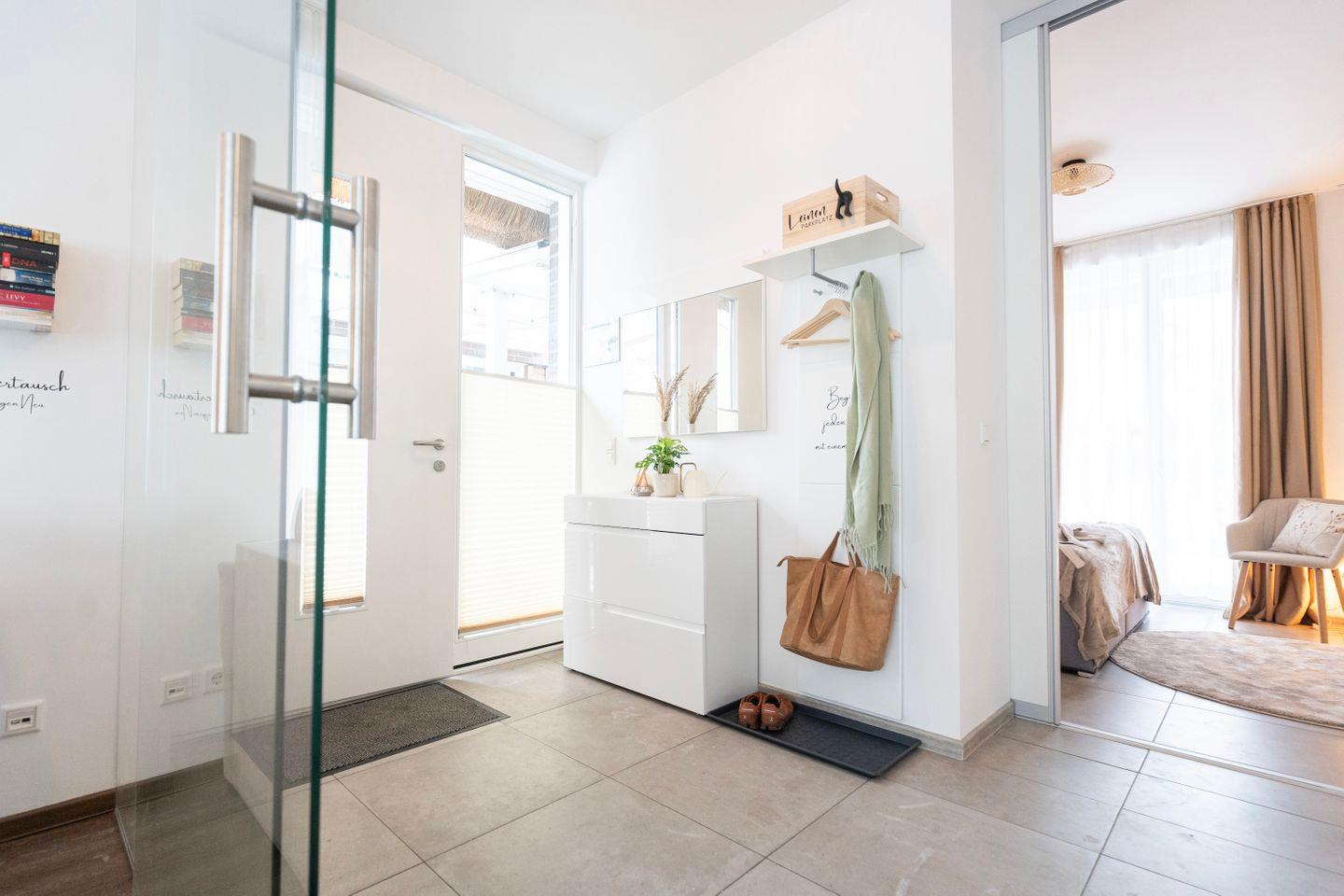 Mit dem Auto kannst Du unsere kostenfreien Stellplätze direkt am Haus nutzen. Dich erwartet ein 59 Quadratmeter großes Apartment mit 1 Schlafzimmern, 1 Bad, Wohnzimmer, Küche und Gäste WC.