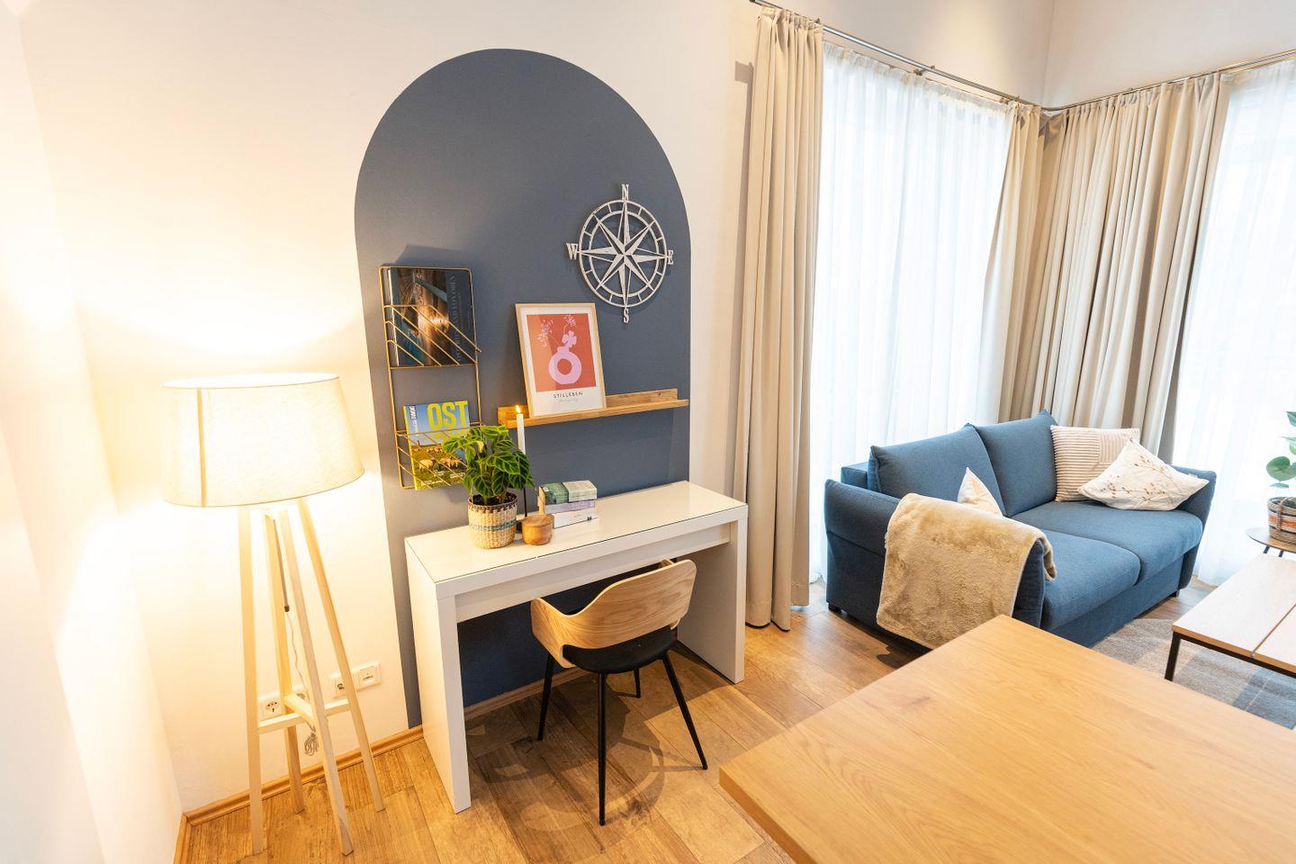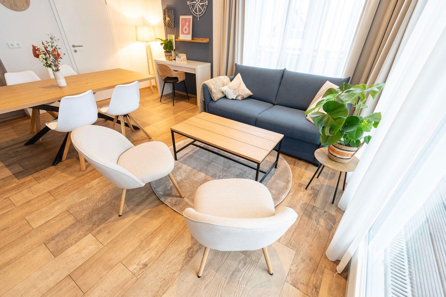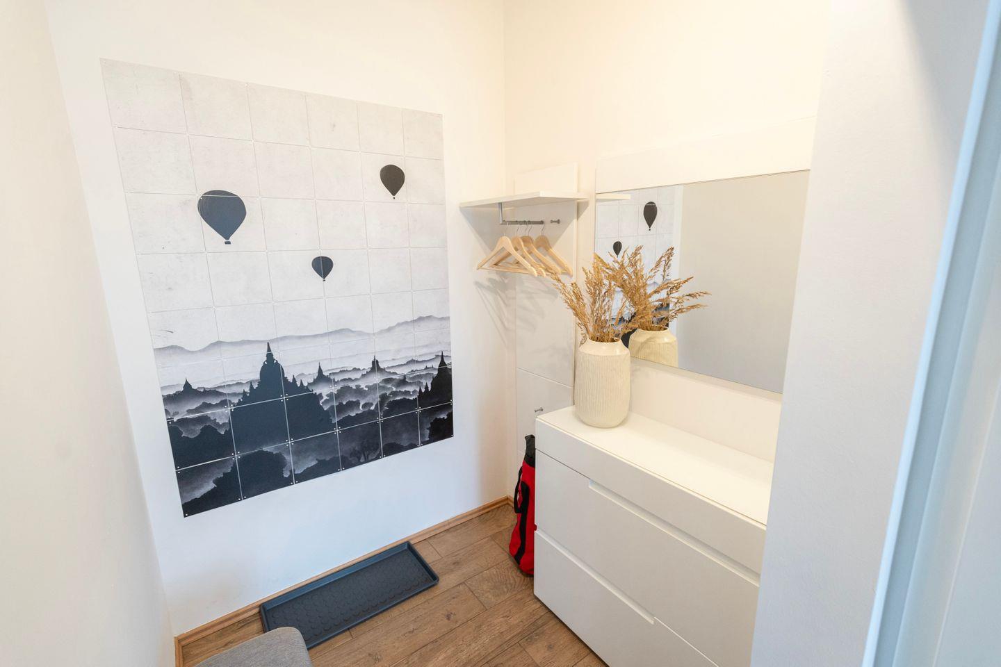 Beginne Deinen Tag mit leckerem Kaffee und genieße all die Annehmlichkeiten dieses Apartments, einschließlich der großen Terrasse mit exklusivem Seeblick, großzügigen Sitzbereichen für 6 Personen, einem Grill und Zugang zur Sauna auf der Anlage. Die Wohnung ist inspiriert vom Element Luft, was sich in einem ruhigen und erfrischenden Interior-Design widerspiegelt.