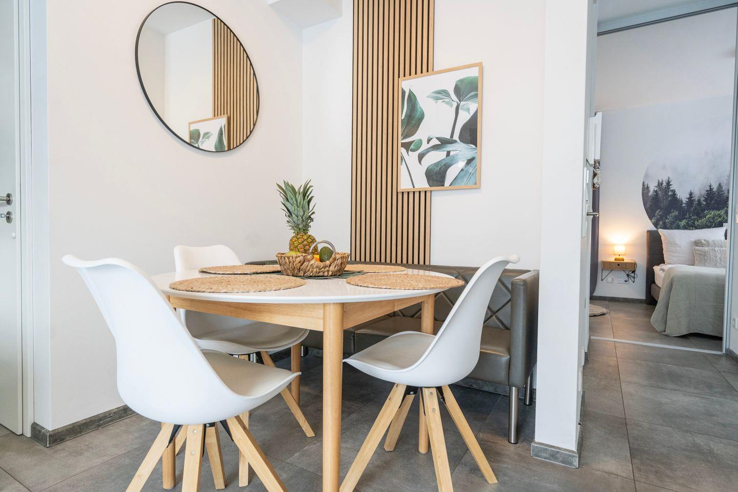 Das Schlafzimmer verfügt über ein gemütliches 1,60m Doppelbett. Im Wohnzimmer findest Du nicht nur hochwertige Schlafcouch, die sich perfekt für Familienbesuche eignet, sondern ebenso einen großen Essbereich für 4 Personen sowie einen gemütlichen Sitzbereich mit Sofa und einem TV. Hier ist sowohl Raum für einen gemütlichen Fernsehabend, wie auch die Möglichkeit eines Spieleabends mit deinen Liebsten.