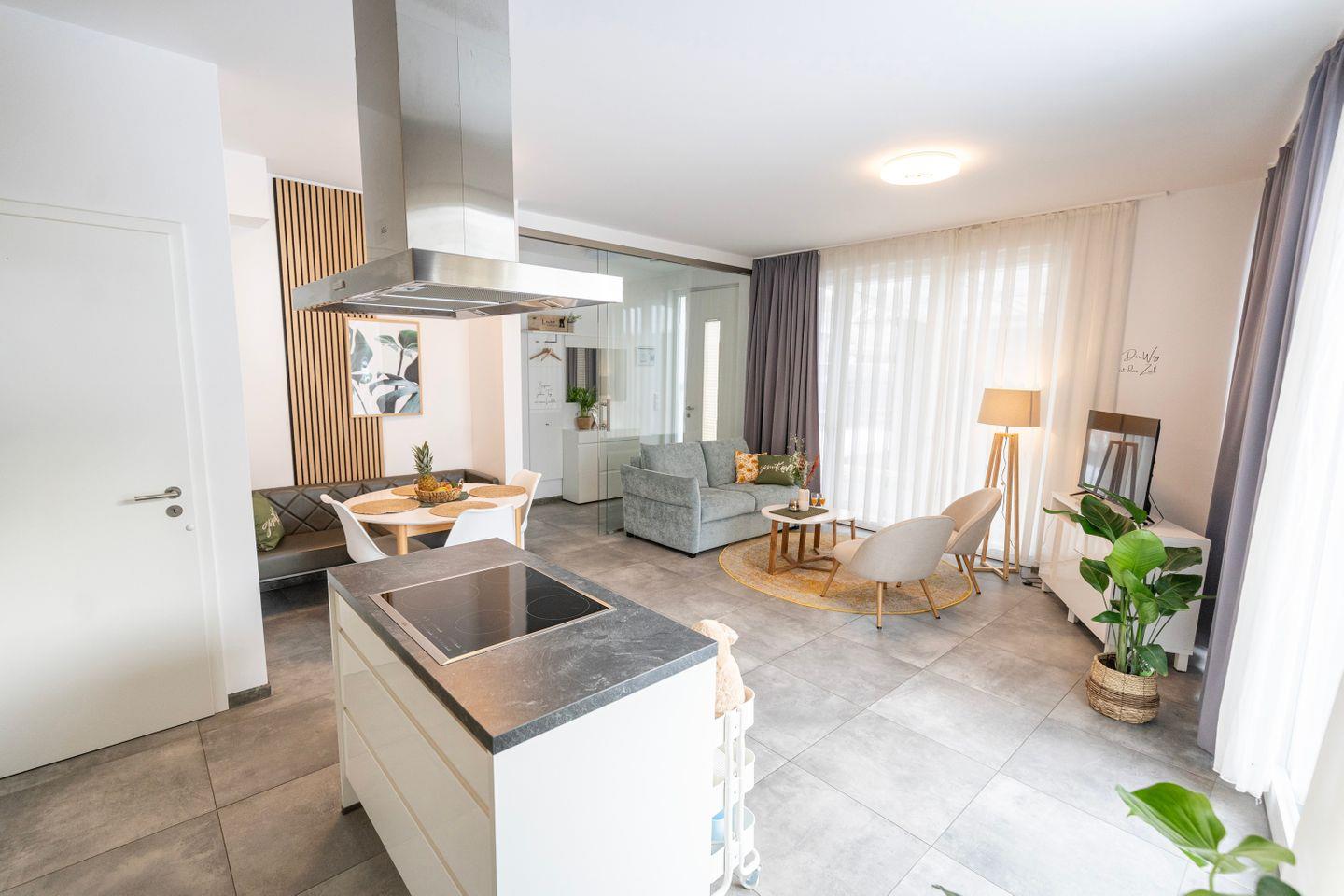 Die Küche ist natürlich voll ausgestattet mit Herd, Kühlschrank, Backofen, Spülmaschine, Mikrowelle und allem was Du sonst brauchst um lecker zu kochen. Das Apartment verfügt ebenso über eine Waschmaschine.