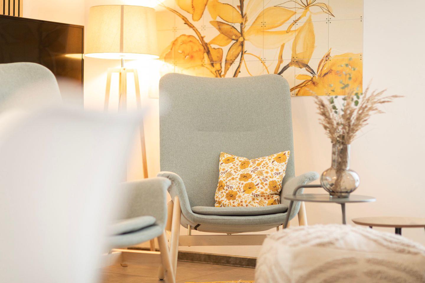 Du kannst deinen Tag mit leckerem Kaffee beginnen und all die schönen Annehmlichkeiten dieses Apartments genießen, inklusive der großen Terrasse mit exklusivem Seeblick, großzügigem Sitzbereichen für 4 Personen, einem Grill und einer Sauna auf der Anlage sowie einer tollen Aussicht in die Natur.