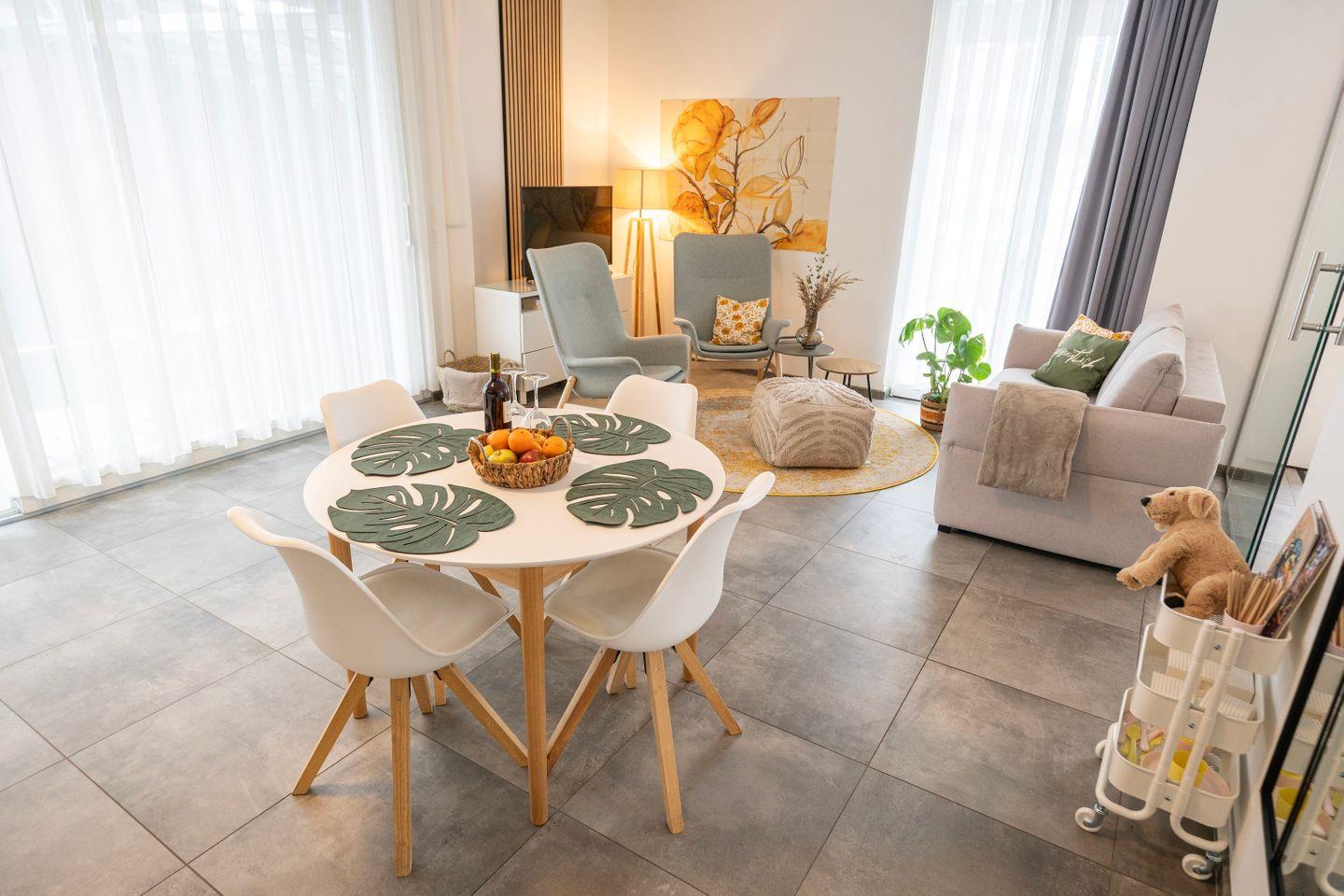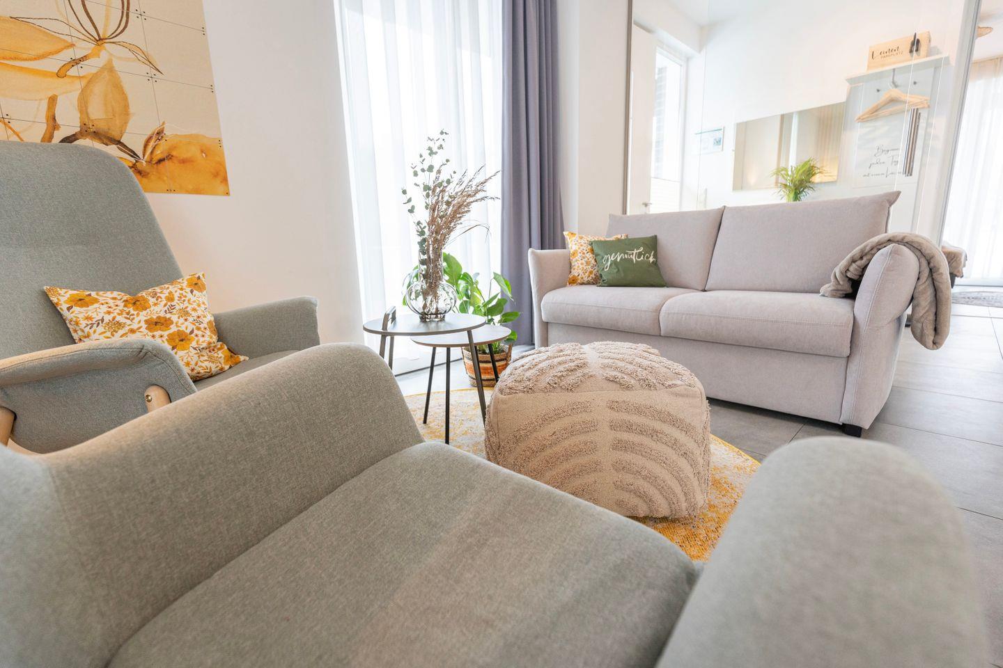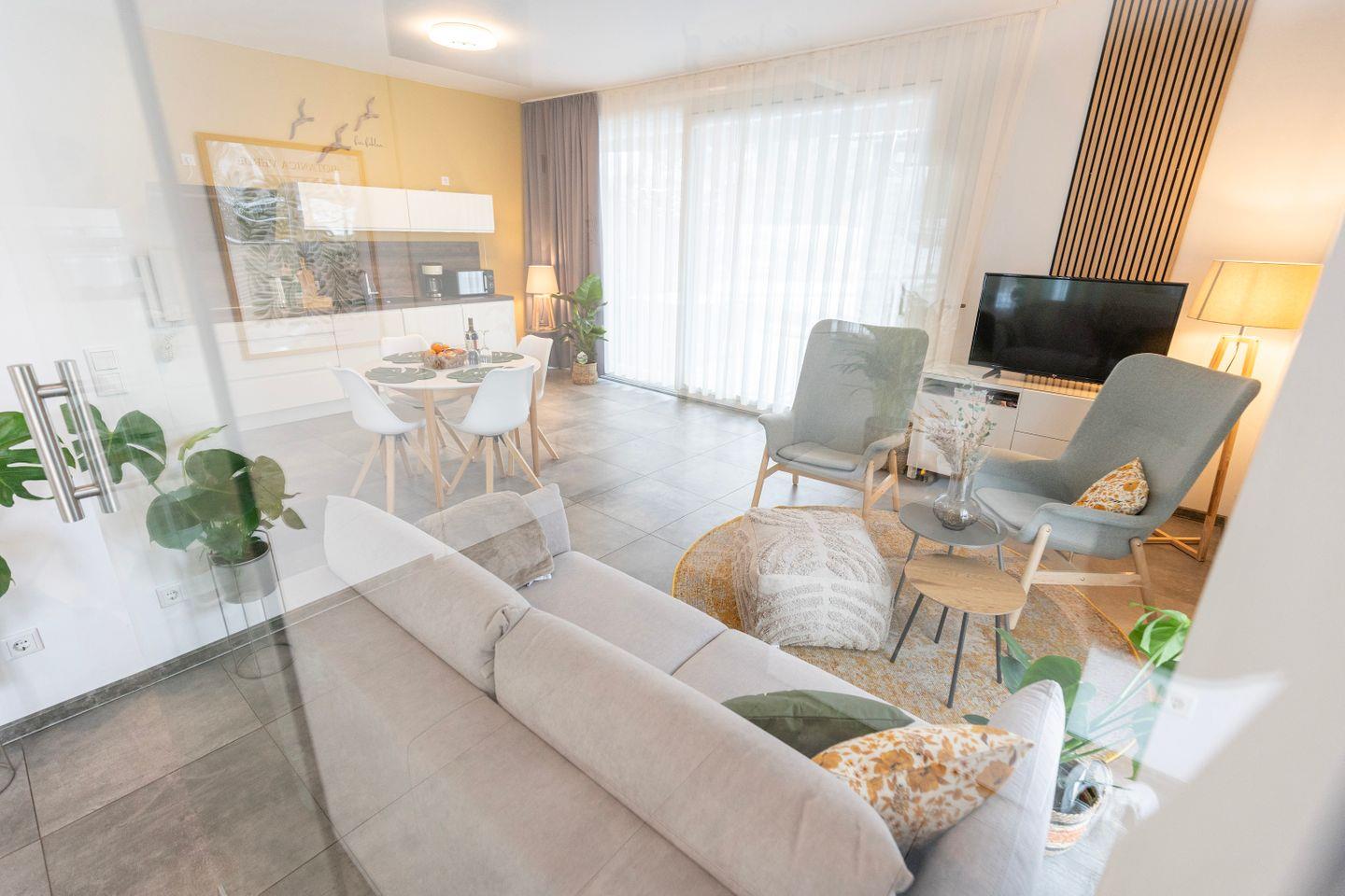 Das Schlafzimmer verfügt über ein gemütliches 1,60m Doppelbett. Im Wohnzimmer findest Du nicht nur hochwertige Schlafcouch, die sich perfekt für Familienbesuche eignet, sondern ebenso einen großen Essbereich für 4 Personen sowie einen gemütlichen Sitzbereich mit Sofa und einem TV. Hier ist sowohl Raum für einen gemütlichen Fernsehabend, wie auch die Möglichkeit eines Spieleabends mit deinen Liebsten.