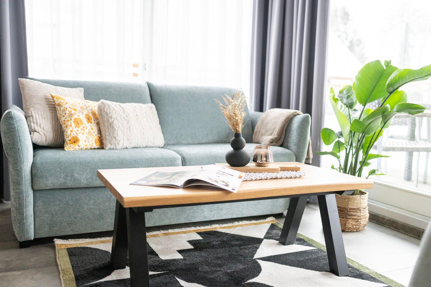 Beginne Deinen Tag mit leckerem Kaffee und genieße all die Annehmlichkeiten dieses Apartments, einschließlich der großen Terrasse mit exklusivem Seeblick, großzügigen Sitzbereichen für 6 Personen, einem Grill und Zugang zur Sauna auf der Anlage. Die Wohnung ist inspiriert vom Element Luft, was sich in einem ruhigen und erfrischenden Interior-Design widerspiegelt.