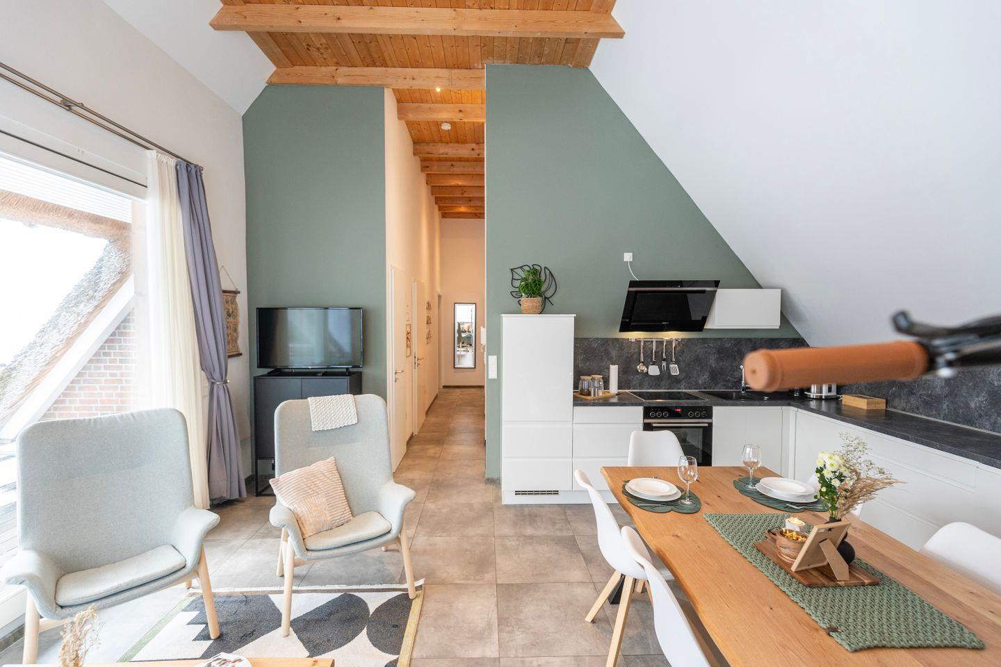 Mit dem Auto stehen Dir ausreichend Parkplätze direkt auf der Ferienanlage zur Verfügung. Dich erwartet ein 82 Quadratmeter großes Penthouse mit 1 Schlafzimmer, 1 Bad, Wohnzimmer und Küche.