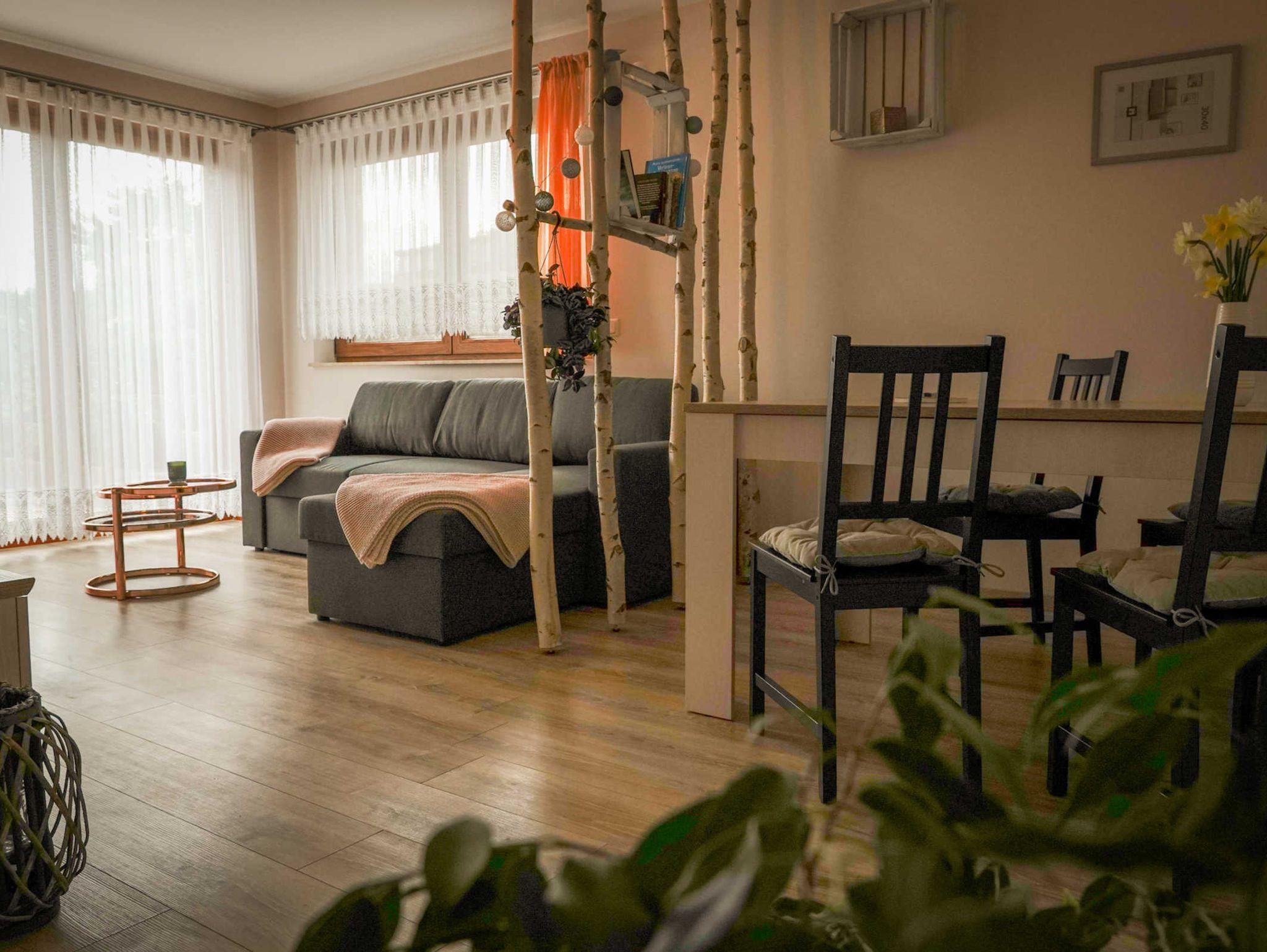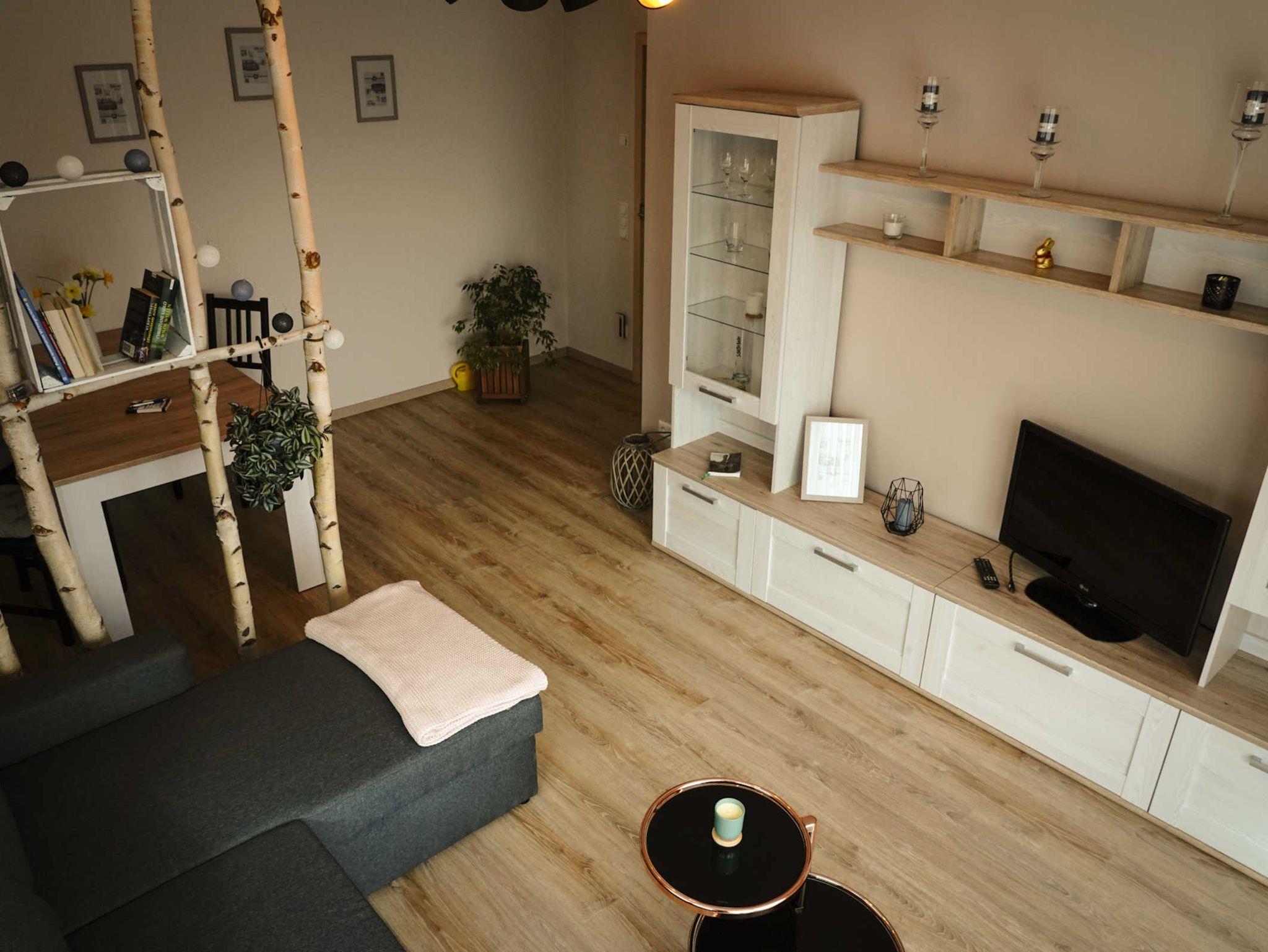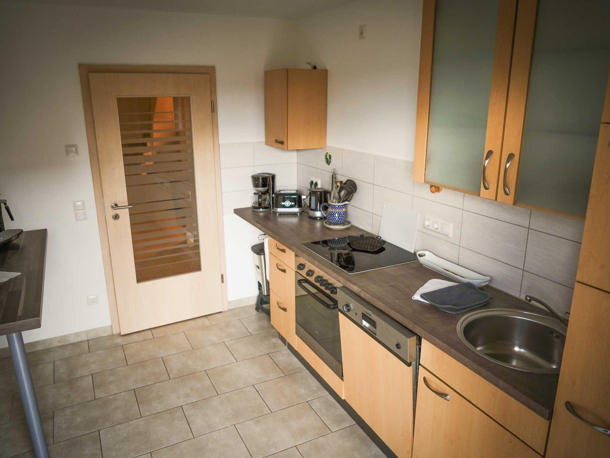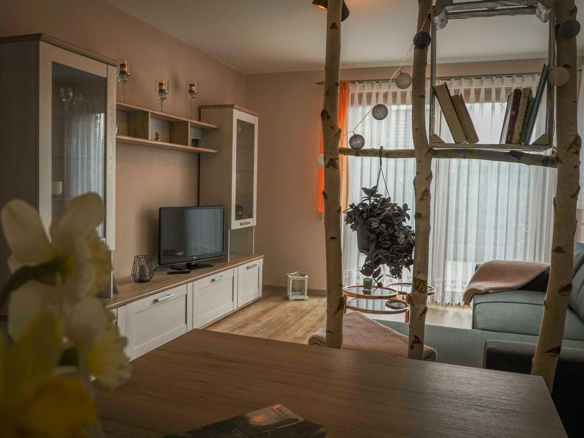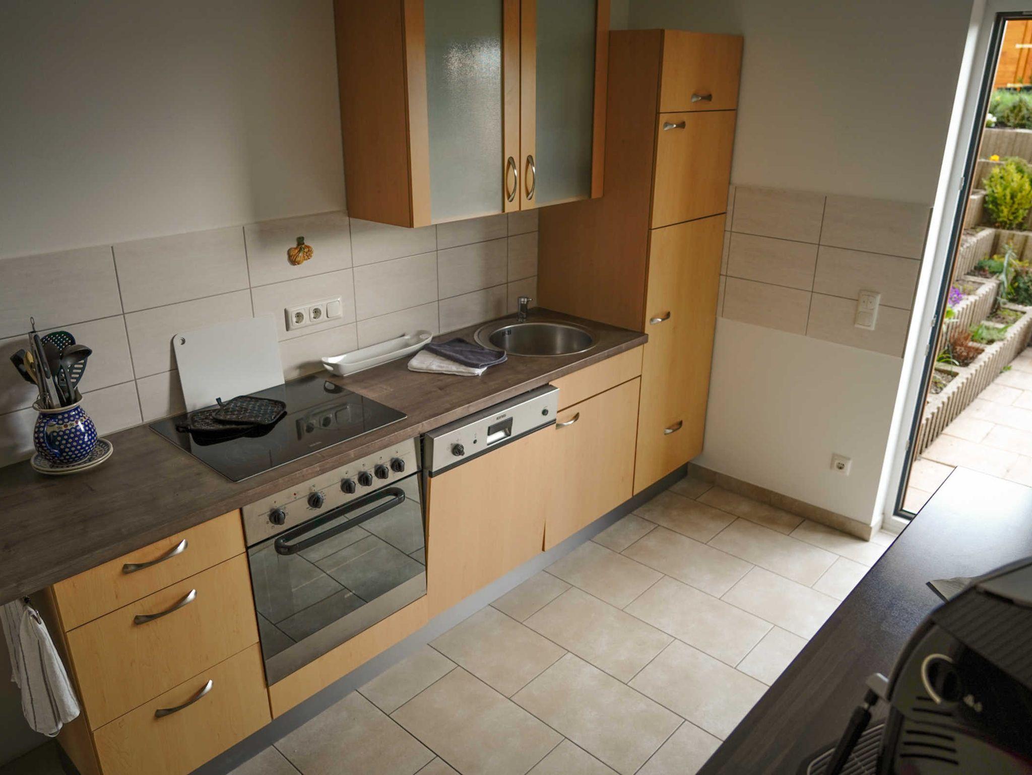 Die Ferienwohnung befindet sich im Erdgeschoss unseres Wohnhauses. Durch die nach Süden ausgerichtete Lage und der großen Fenster ist die 70 m² Wohnung sehr hell und lichtdurchflutet. Es stehen Ihnen eine voll ausgestattete Küche, ein Bad mit Wanne & Dusche, ein Schlafzimmer sowie eine große Wohnstube mit Schlafcouch zur Verfügung.