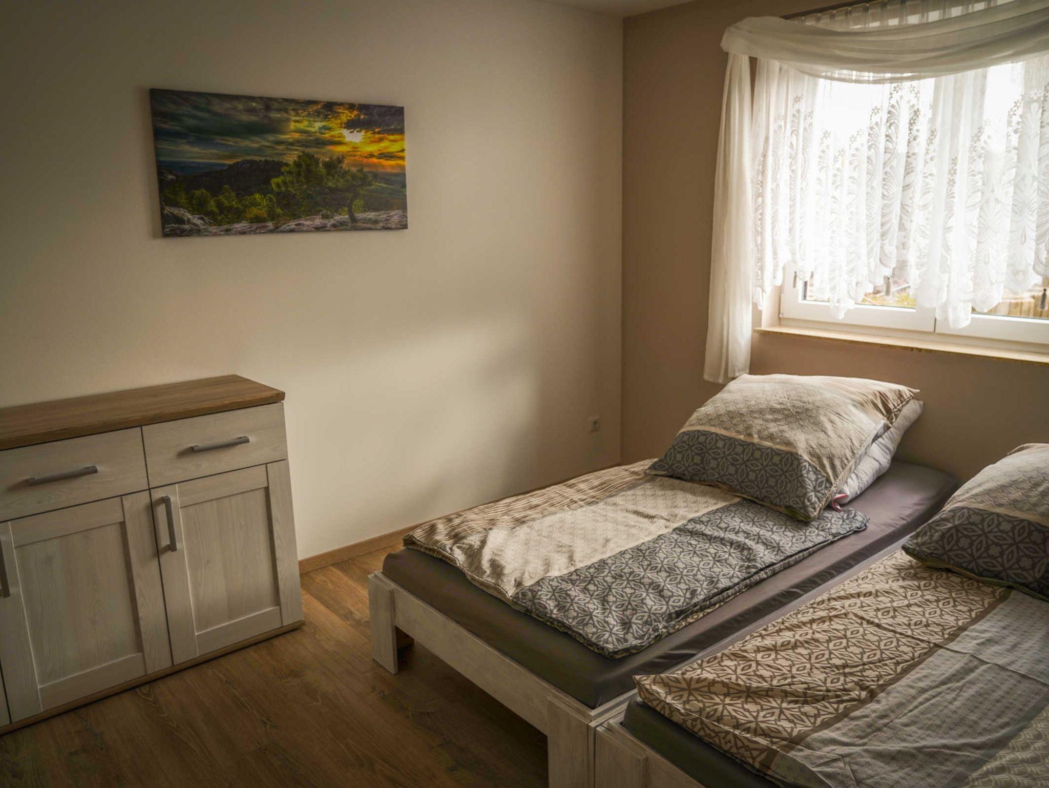 1 Schlafzimmer für 2 Erwachsene, können auch getrennt gestellt werden