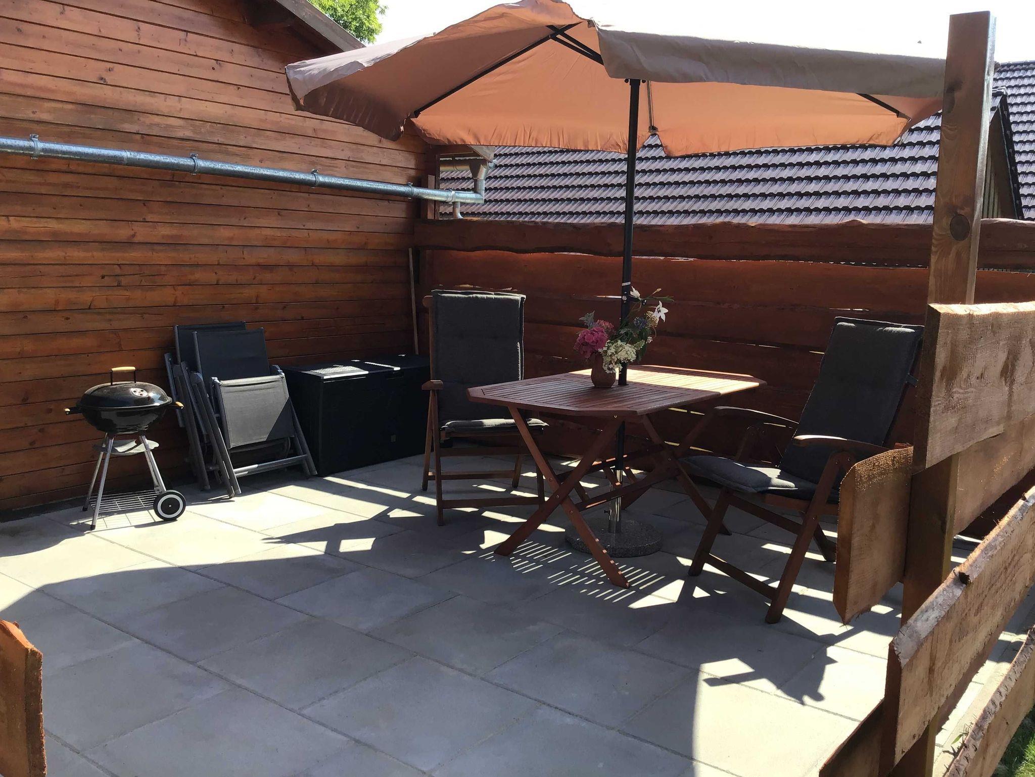 Genießen Sie auf Ihrer 25 m² Terrasse Ihren Kaffee oder entspannen Sie am Abend
