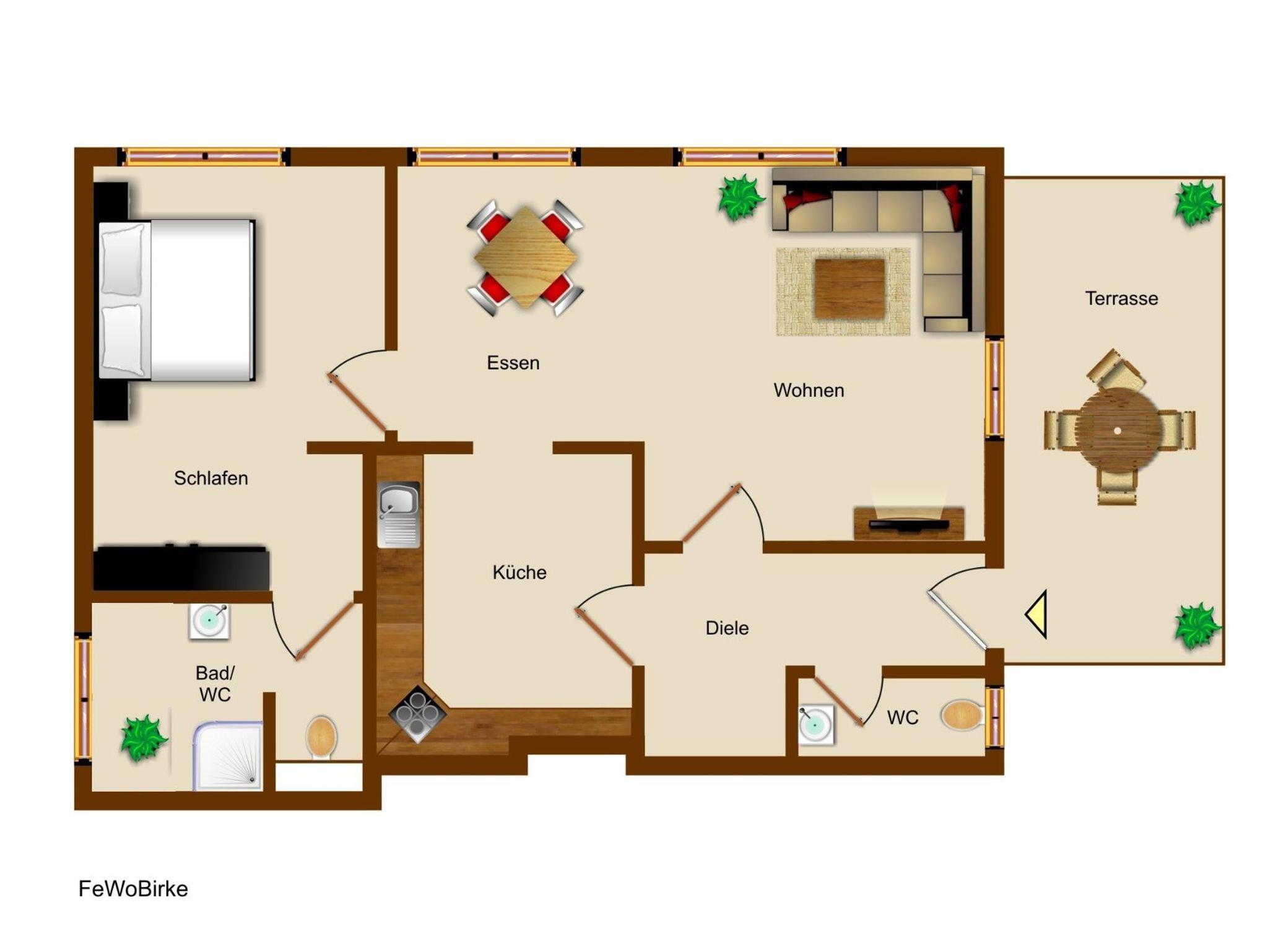 Alles steht im Zeichen der Erholung - nach einer ausgiebigen, erlebnisreichen Wanderung auf den facettenreichen Wanderwegen im Nationalpark kommt in der eleganten, in Erdtönen eingerichteten Ferienwohnung die Seele zur Ruhe. Wohnung mit Wohn/Esszimmer, Schlafzimmer, eingerichtete Küche, Bad mit Dusche/WC u. sep. WC