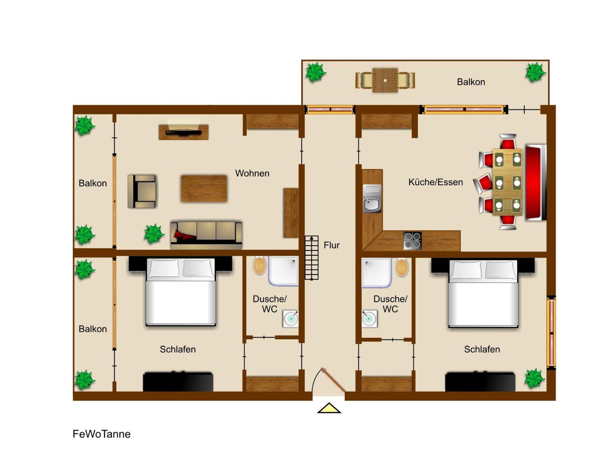 In dieser komfortablen, gemütlichen Ferienwohnung können sie auf den Wecker verzichten: zwitschernde Vögel, Sonnenstrahlen und frischer Kaffeeduft übernehmen den Weckdienst. Wohnung mit zwei getrennten Schlafzimmer, jeweils mit eigenem Bad mit Dusche/WC, Wohnzimmer, große Wohnküche mit Geschirrspüler, Balkone.