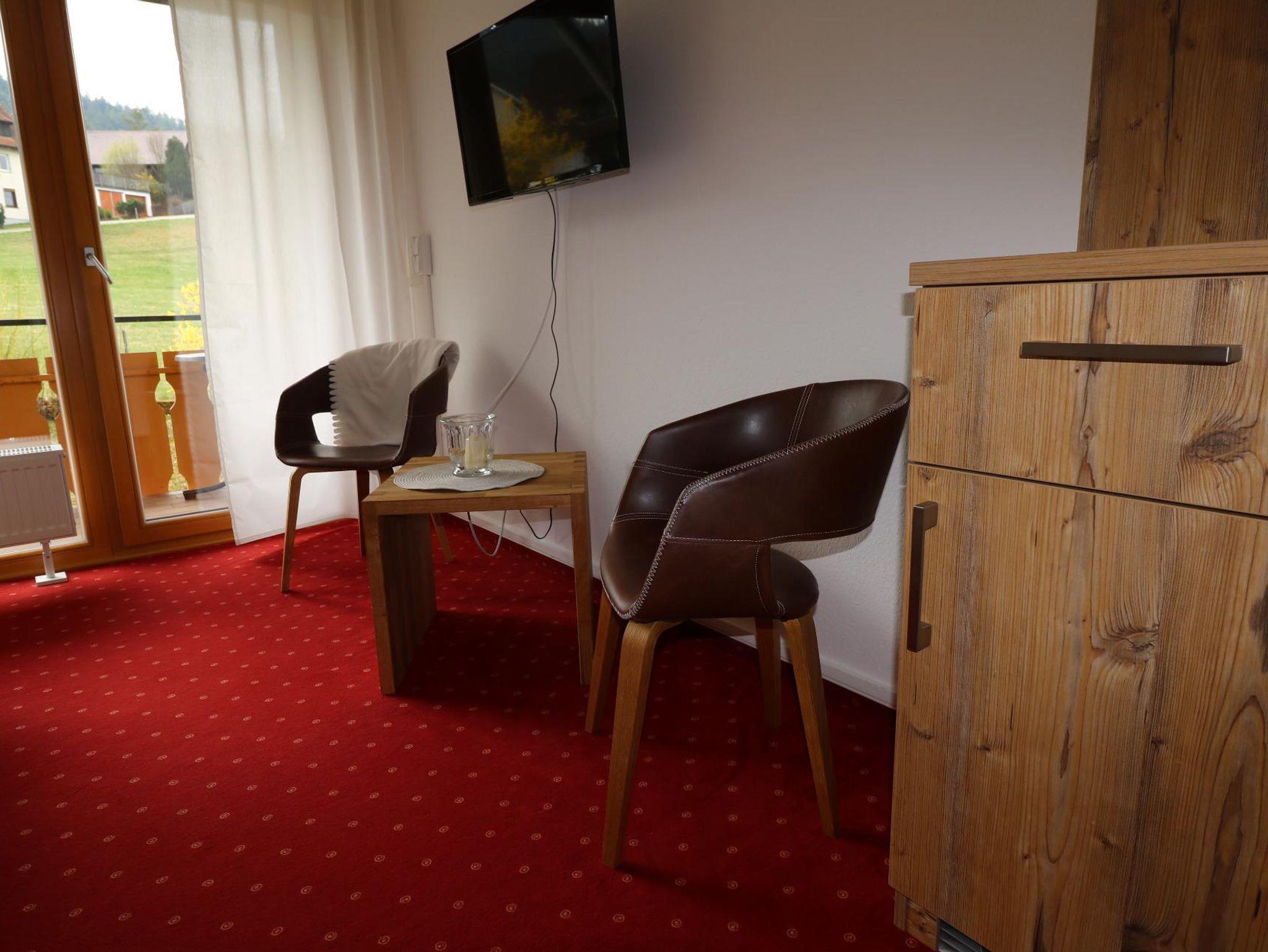 Mehr als nur ein warmes Bett: ein Balkon mit traumhaften Blick auf den Schwarzwald. Gästezimmer mit Doppelbett, Sitzgelegenheit Anrichte mit Kühlschrank, Bad mit Dusche/WC.